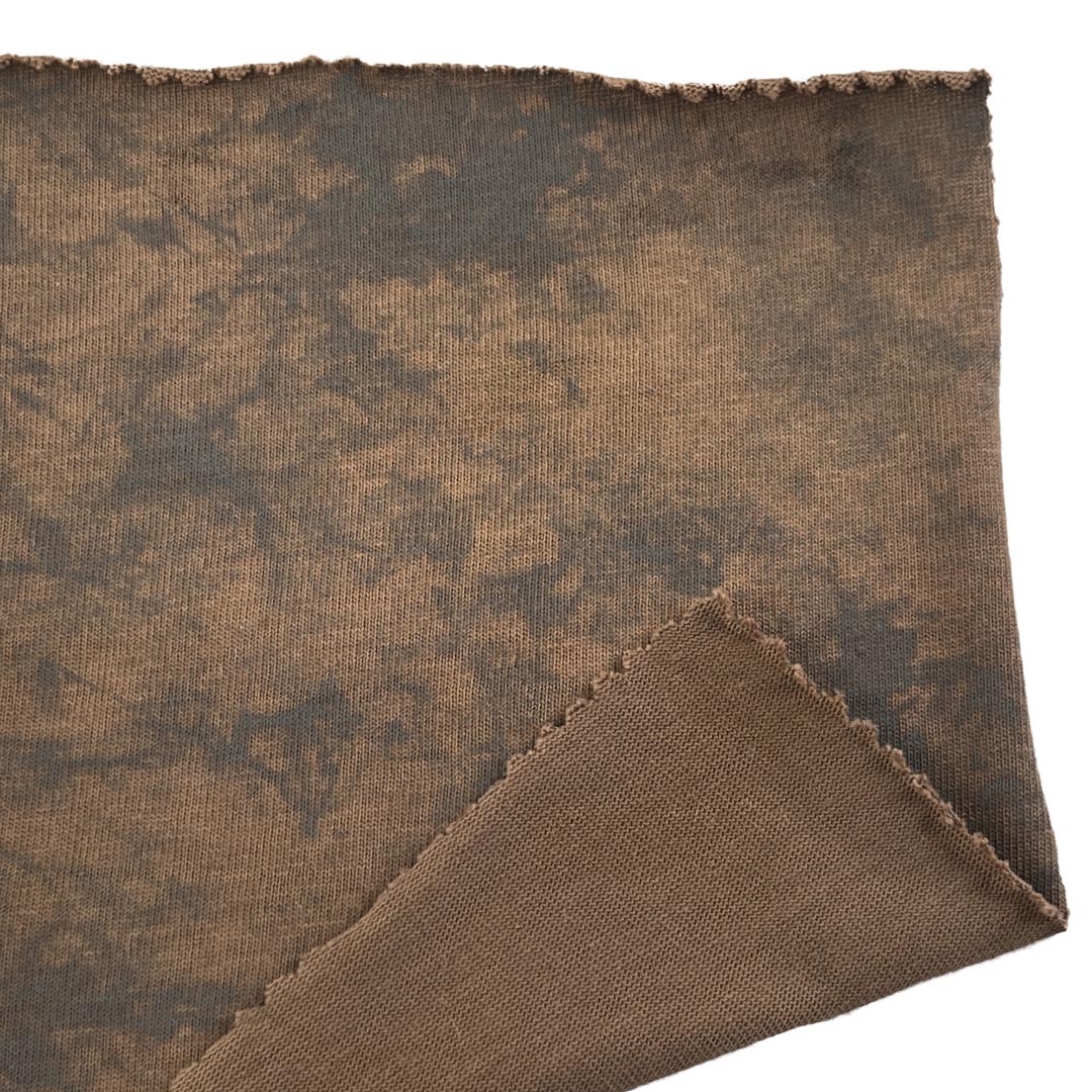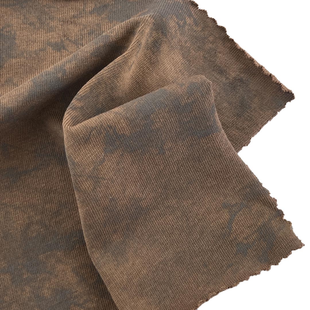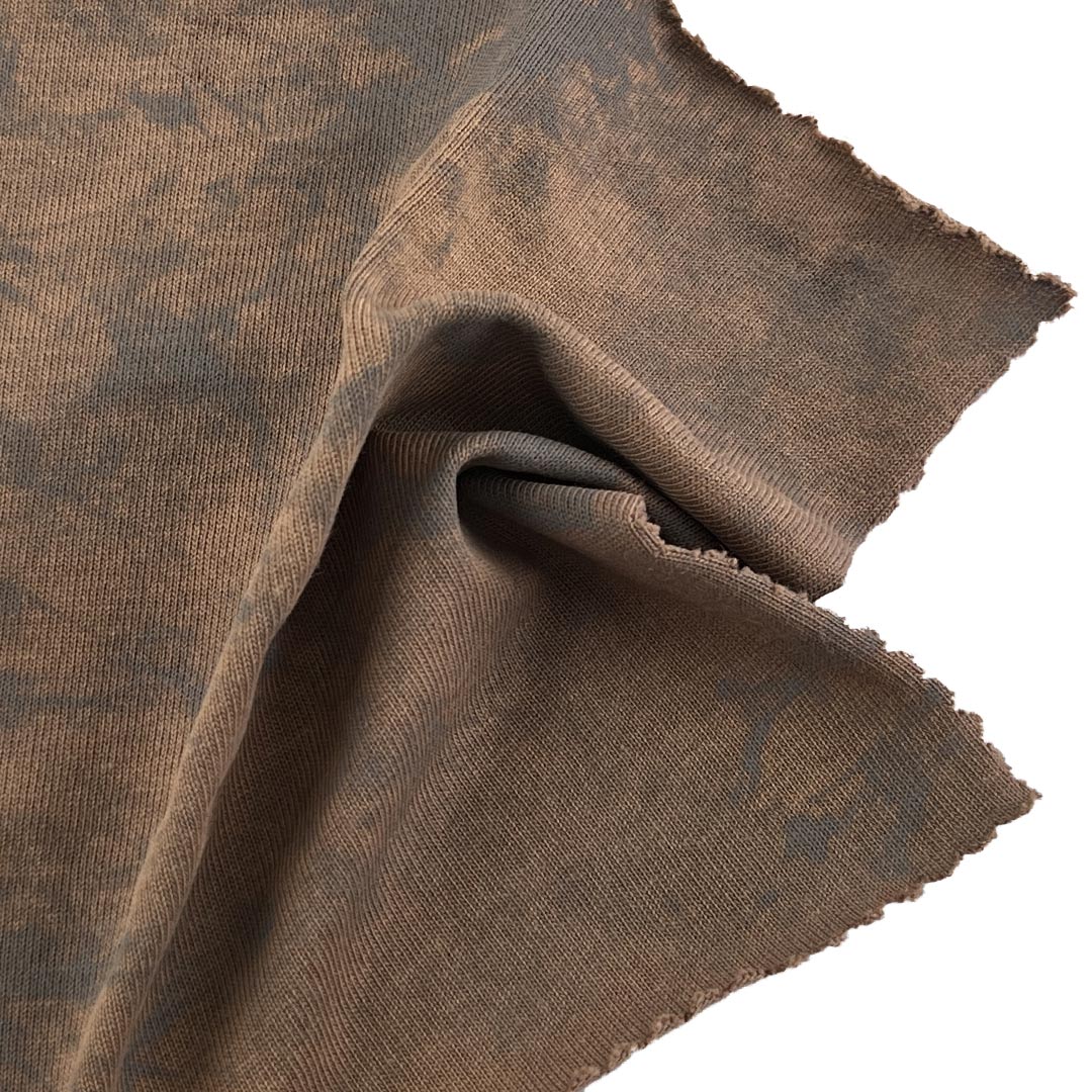 Embrace the rugged texture and vintage character of our 230gsm single jersey acid wash fabric, crafted entirely from 100% premium cotton. This medium-weight fabric undergoes a specialized acid wash process that creates a beautifully marbled, weathered appearance with subtle tonal variations and a soft, lived-in hand feel. The all-cotton composition ensures exceptional breathability, moisture-wicking comfort, and lasting softness, making it ideal for T-shirts and long sleeve shirts designed for casual, everyday wear.