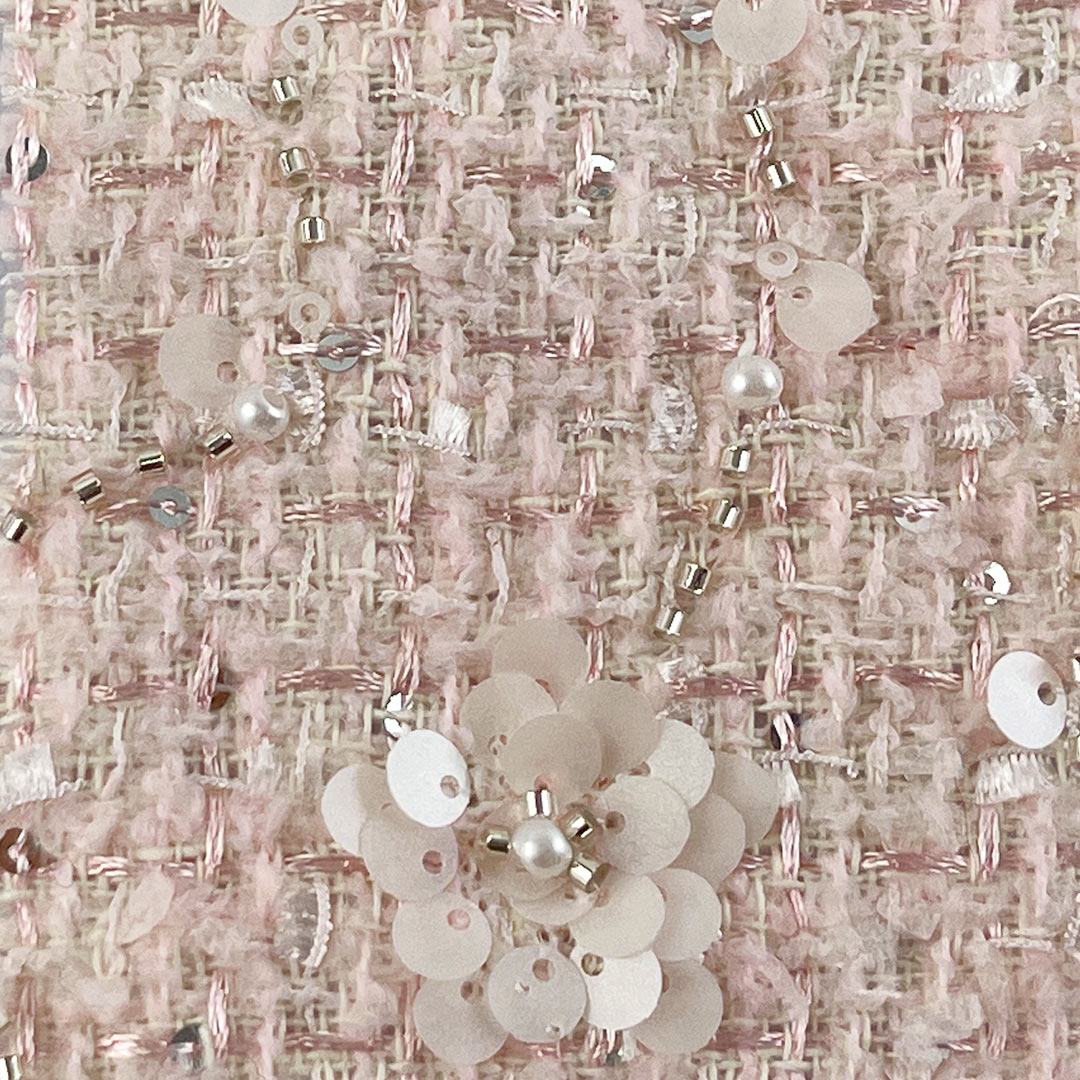 The glossy finish enhances the fabric's reflective quality, catching light with every movement to create a dynamic, celebratory effect. The shiny surface and beaded details work harmoniously to deliver a lavish tactile and visual experience, ideal for special occasions where style and glamour take center stage. Easy to care for with gentle handling, this Beaded Fabric retains its dazzling appearance, secure bead adhesion, and sophisticated allure over time.