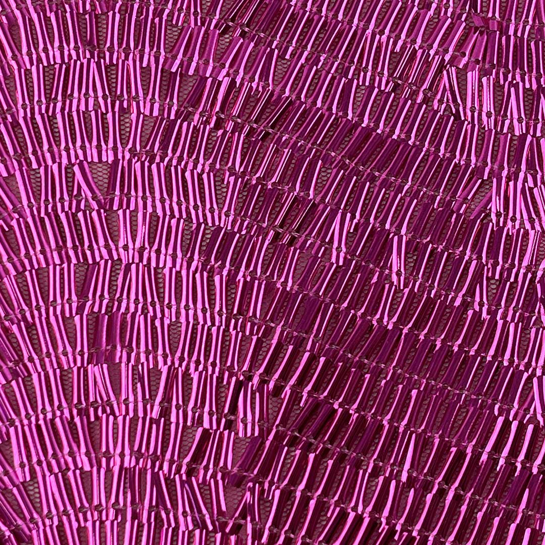 Introducing our dazzling beaded material, expertly crafted from 100% Polyester. This luxurious fabric combines intricate beadwork with a glossy, shiny surface to create a material that radiates opulence and creative versatility. The all-polyester base ensures exceptional durability, vibrant color retention, and resistance to wrinkles, while the meticulously applied beads add dimension, texture, and a captivating sparkle. This fabric boasts a structured yet elegant drape, perfectly suited for stunning evening gowns that command attention at formal events and for intricate craft projects that seek decorative richness.