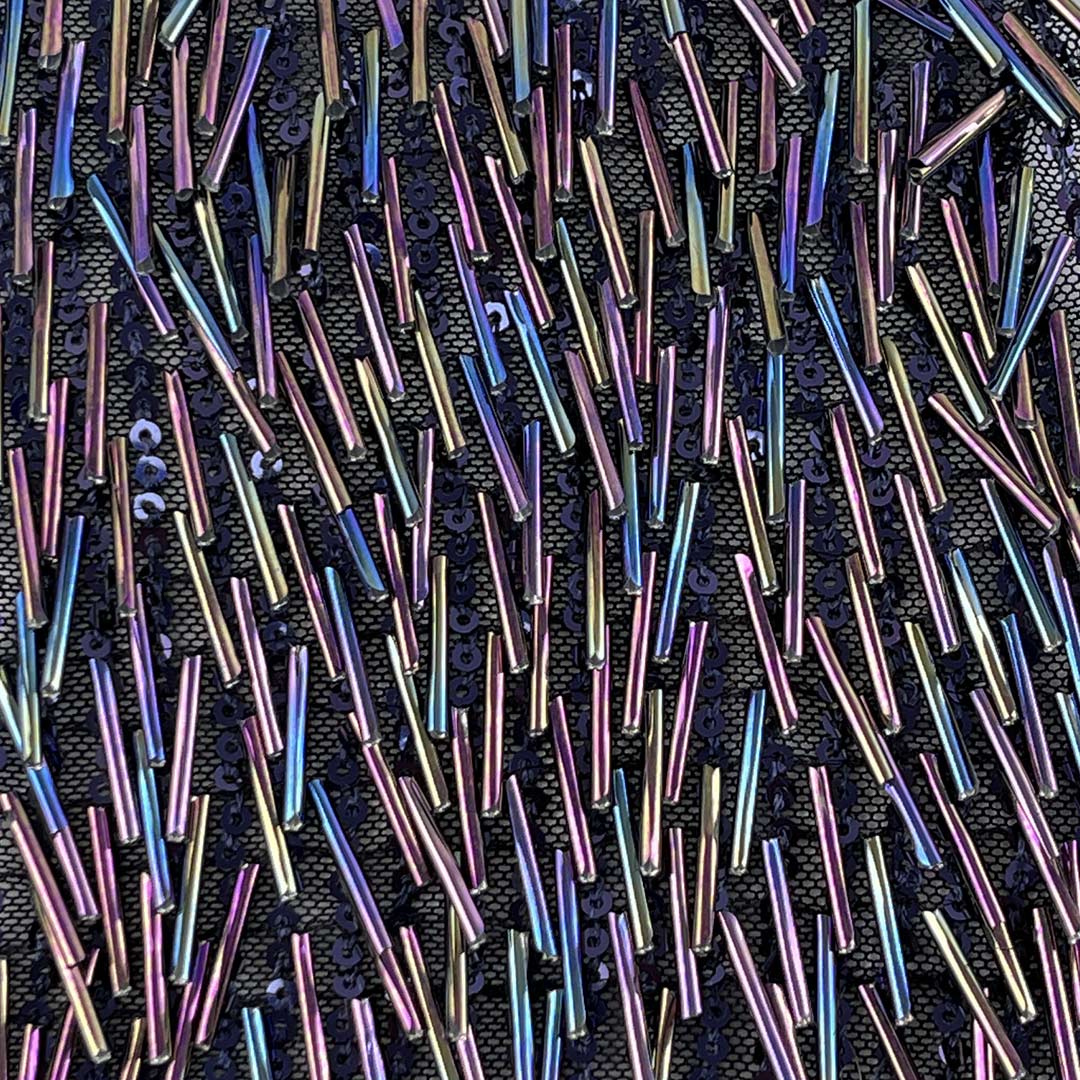 Introducing our dazzling luxury beaded fabric, expertly crafted from 100% Polyester. This luxurious fabric combines intricate beadwork with a glossy, shiny surface to create a material that exudes opulence and celebration. The all-polyester base ensures exceptional durability, vibrant color retention, and resistance to wrinkles, while the meticulously applied beads add dimension, texture, and a captivating sparkle. This fabric boasts a structured yet fluid drape, perfectly suited for eye-catching party dresses and stylish skirts that shine under festive lights.