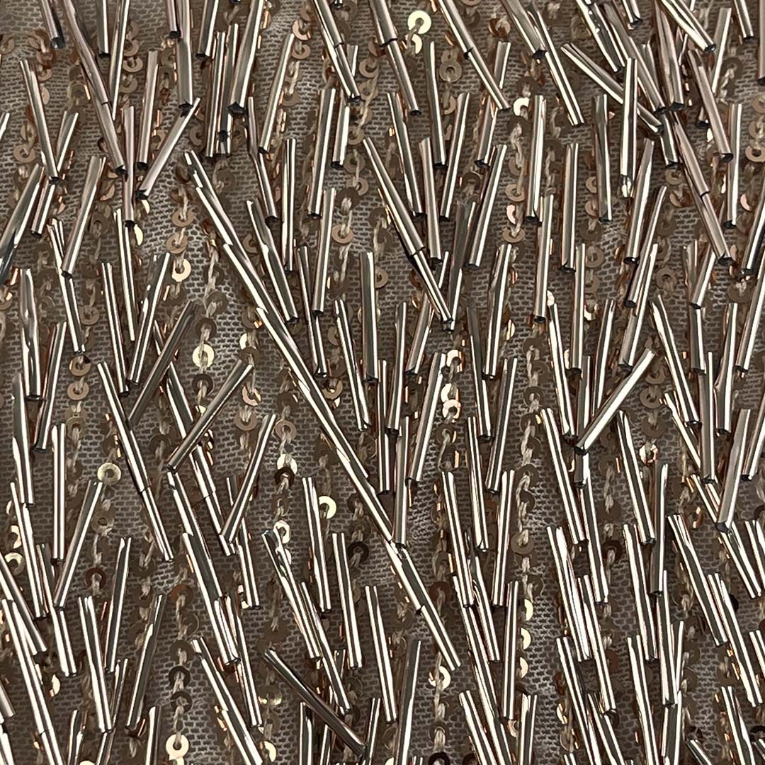 Introducing our exquisite Beaded Fabric, crafted entirely from 100% Polyester to deliver a brilliant fusion of decorative luxury and creative versatility. This fabric features intricate beadwork meticulously arranged to create shimmering patterns that capture and reflect light, offering a shiny glossy finish ideal for elegant dresses and detailed craft projects. Polyester ensures the beads remain securely attached while providing a durable, easy-to-handle base that maintains its shape and luster over time.
