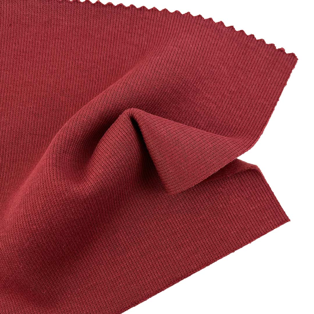 This 420gsm laminated fabric features an innovative two-layer construction: 63.5% cotton/35.5% polyester face for softness, 94.5% polyester/5.5% spandex base for stretch support. Combining lamination and fleece brushing creates plush handfeel and thermal insulation. The heavy weight provides excellent drape, ideal for hoodies, sportswear and zip-ups. Cotton face ensures comfort, polyester-spandex base offers movement adaptability, brushed interior enhances warmth. Balancing aesthetics, function and durability for multi-scene sportswear needs.