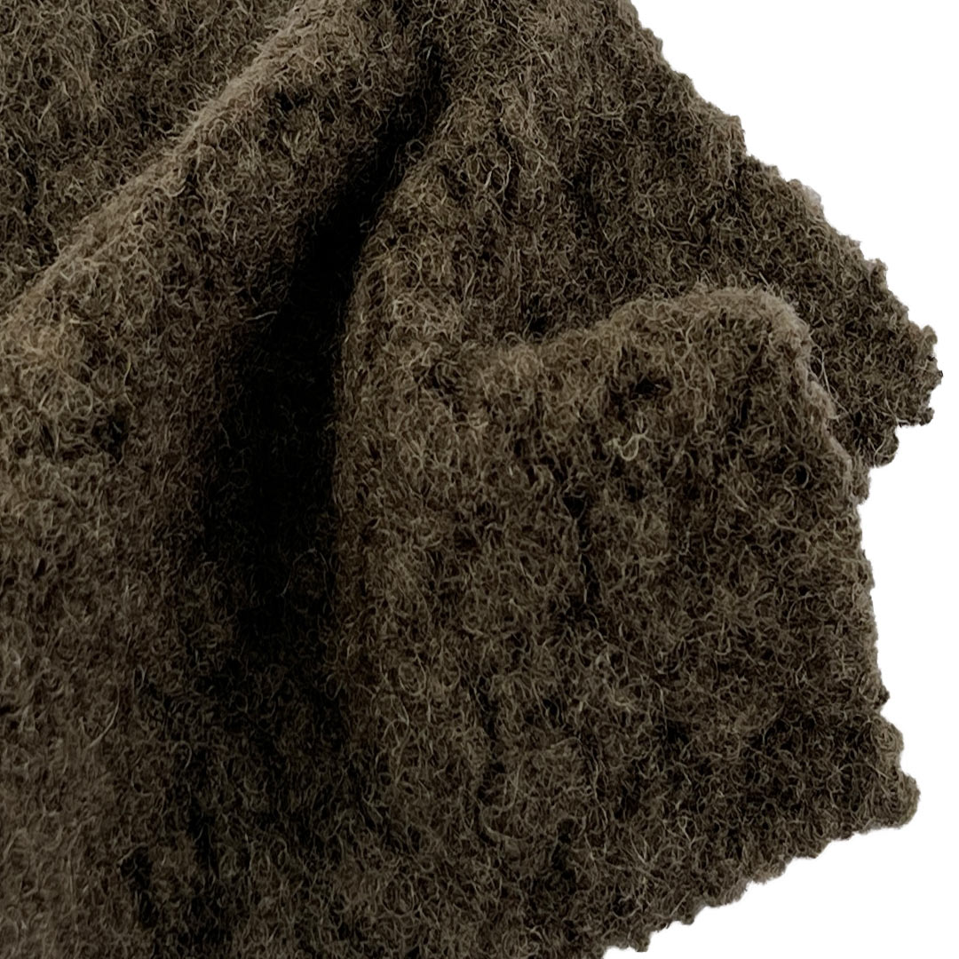 Weighing 600gsm, this substantial fabric delivers exceptional warmth and structural presence, making it ideal for cozy zip-up hoodies and elegant sweaters designed for harsh winter weather. The plush surface feels gentle against the skin, while the boucle loops create a rich, dimensional texture that catches light and adds character to any garment. Despite its weight, the fabric maintains a graceful drape that allows for tailored silhouettes and comfortable movement. Easy to care for with proper handling, this Boucle Fabric retains its vibrant colors, intricate texture, and plush softness over time.