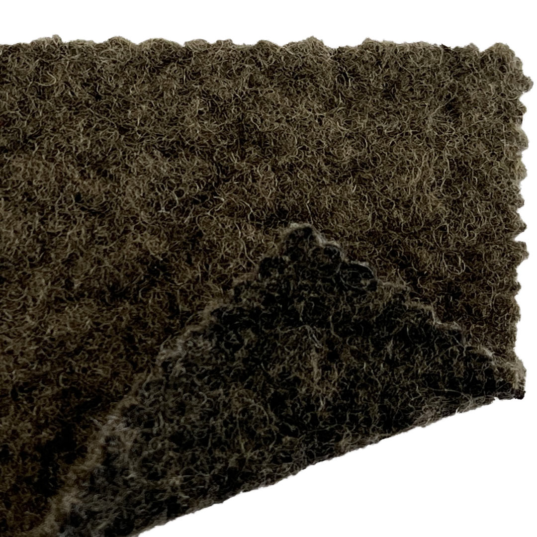 Indulge in the luxurious warmth and intricate texture of our 600gsm loop velour material, expertly blended from 60% Wool and 40% Viscose. This heavyweight fabric masterfully combines the distinctive looped structure of boucle with an exceptionally plush, soft hand feel, creating a material that offers both visual depth and sumptuous comfort. Wool provides natural insulation, breathability, and moisture-wicking properties, ensuring warmth and comfort in cold conditions, while viscose adds a smooth drape, enhanced softness, and excellent color retention.