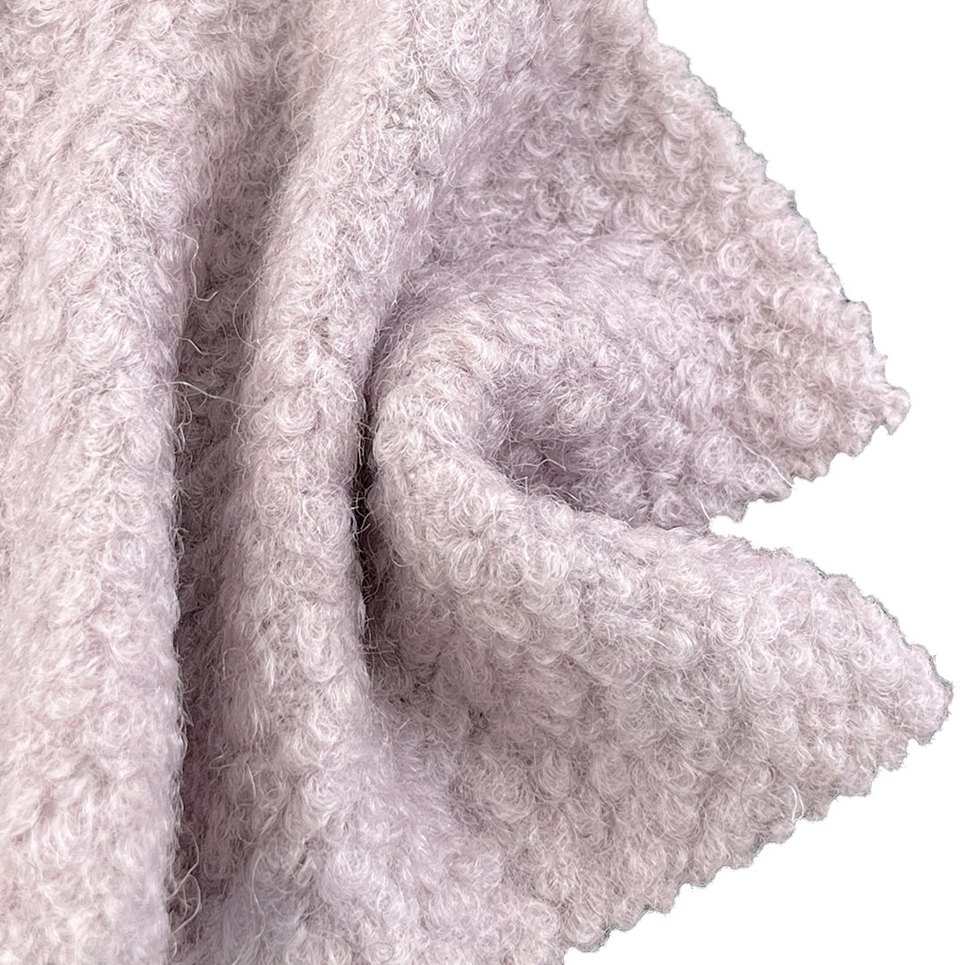 Weighing a substantial 780gsm, this fabric offers maximum warmth and coverage, making it ideal for jackets and sweaters designed for harsh winter weather. The boucle loops add visual depth and a tactile richness that elevates any garment, while the plush finish ensures a gentle touch against the skin. Despite its heavyweight, the fabric remains flexible and drapes beautifully, allowing for tailored silhouettes without stiffness. Easy to care for with proper handling, this boucle fabric maintains its textured appeal, vibrant colors, and luxurious softness over time.