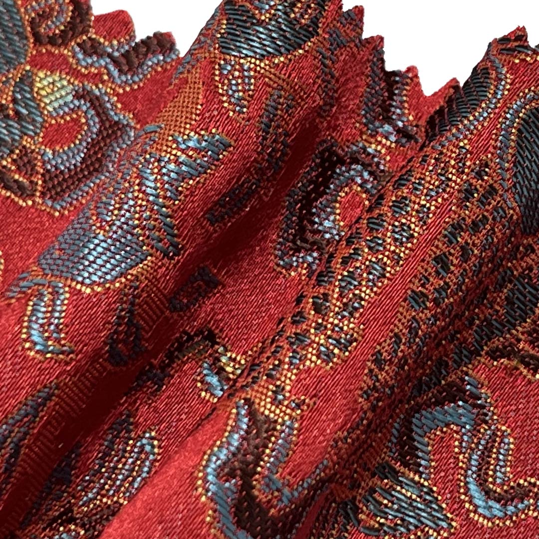 Crafted entirely from 100% premium polyester, our traditional brocade material is engineered to deliver a perfect combination of structural elegance, durability, and practical functionality for high-end home decor applications. This exquisite fabric features intricate jacquard brocade patterns woven into a crisp, structured base, creating a visually stunning surface ideal for elegant bed runners and refined table runners.