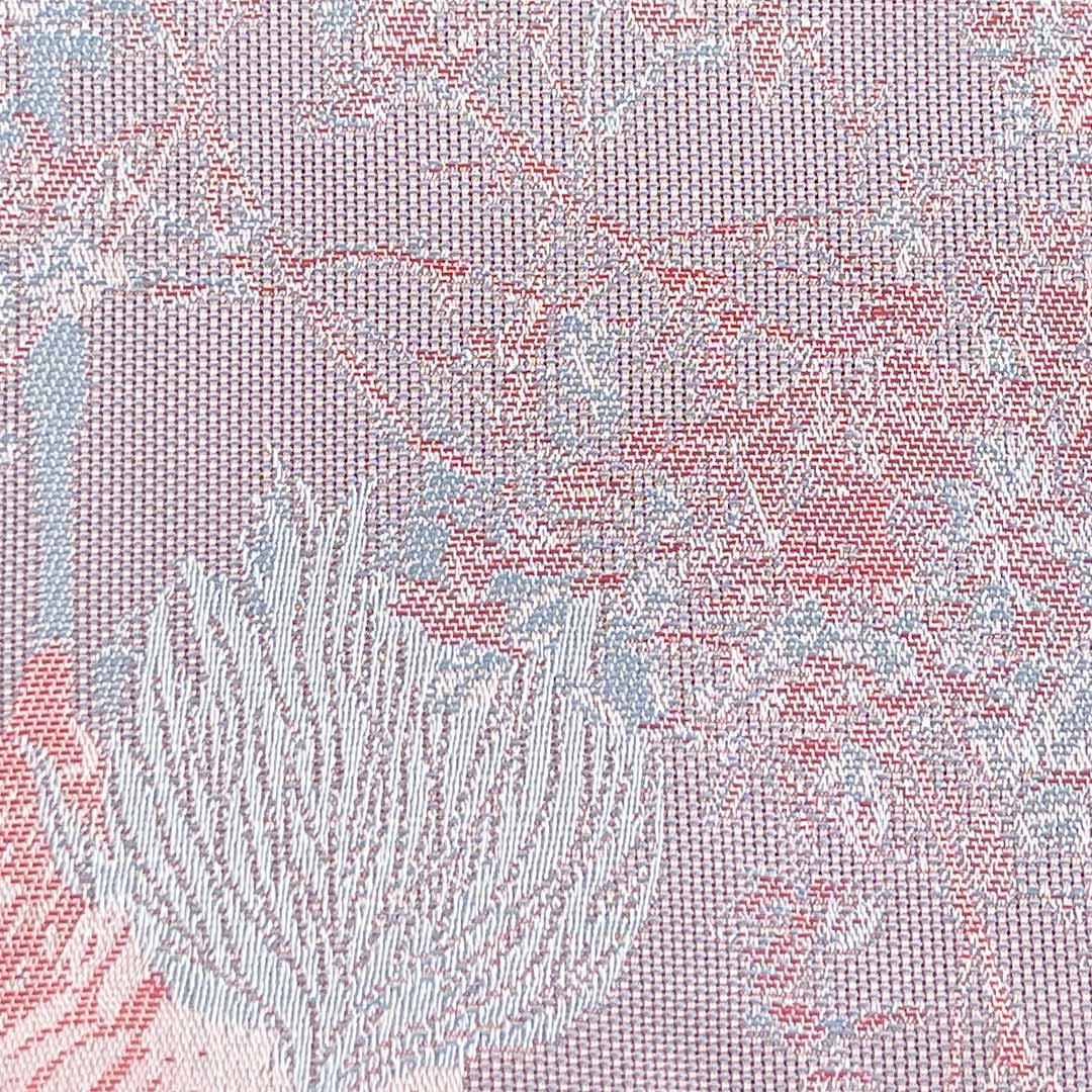 Perfect for linens that elevate dining settings with their rich texture and luminous sheen, as well as wedding gowns that demand grandeur, resilience, and a flawless finish, this fabric guarantees vibrant color retention, wrinkle resistance, and easy care. The brocade's glossy surface catches and reflects light beautifully, accentuating its detailed motifs, while the crisp texture provides a polished, high-end appearance. With substantial body yet graceful drape, this fabric holds its shape impeccably and moves with dignified elegance.