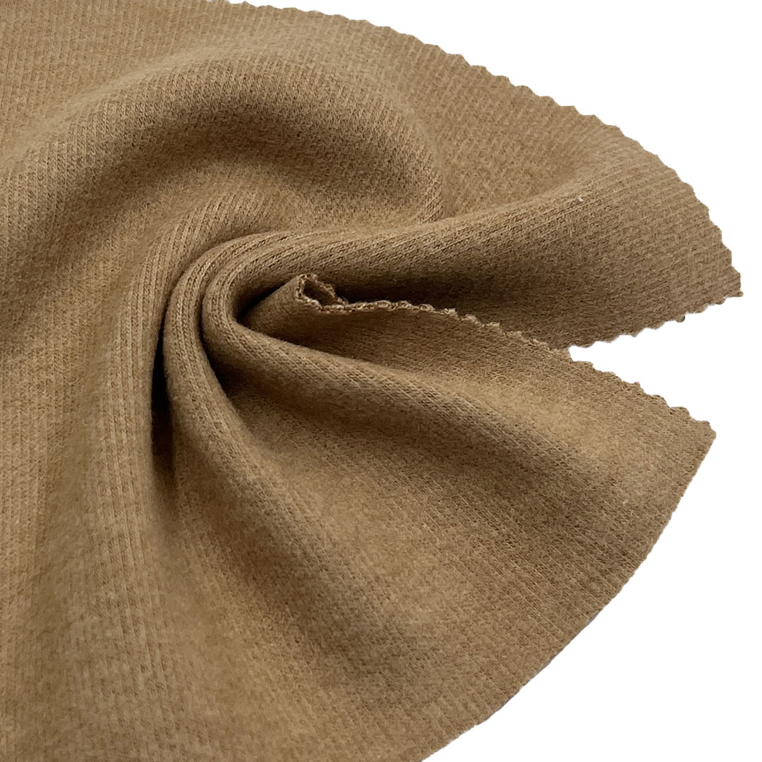 Weighing 300gsm (10.6oz), this refined double knit fabric combines 66% viscose, 14% cotton, 14% acrylic, and 6% spandex with a brushed finish to create a soft hand feel material ideal for sweatshirts and dresses. The double knit construction provides balanced structure and natural stretch, while the brushed interior enhances tactile comfort and warmth. Viscose ensures exceptional softness, breathability, and moisture-wicking properties, cotton adds natural comfort and absorbency, acrylic contributes lightweight warmth and color retention, while spandex offers comfortable stretch and recovery.