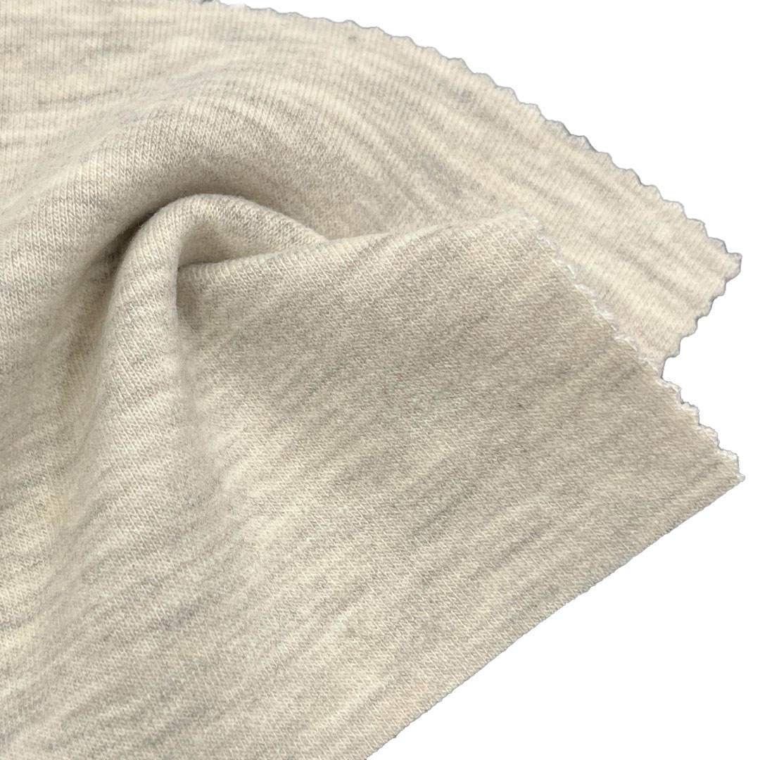 Viscose ensures softness, breathability, and moisture-wicking, acrylic contributes lightweight warmth and color retention, cotton adds natural comfort and absorbency, polyester offers durability and shape retention, spandex provides stretch and recovery, while wool contributes subtle insulation and resilience. This versatile fabric maintains balanced performance for technical casualwear. The material demonstrates excellent workability during garment construction, sewing smoothly while maintaining its scuba structure and brushed texture. The soft hand feel enhances wearing comfort, distinguishing this fabric from standard materials.