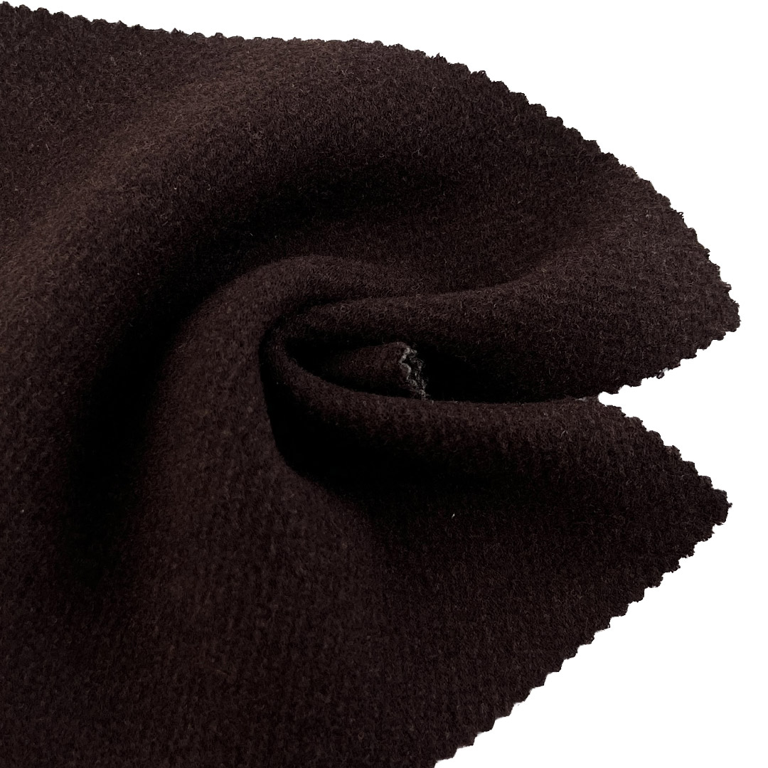 Experience the perfect balance of structure and softness with our 500gsm Double Knit Brushed Fabric, engineered with a sophisticated dual-layer design. The face side combines 52.6% Polyester, 4.3% Acetate, 3.1% Wool, and 40% Viscose to deliver a crisp yet soft hand feel with subtle sheen and texture, while the back side uses 68% Polyester, 29% Viscose, and 3% Spandex to ensure durability, flexibility, and comfort. This heavyweight fabric integrates the resilience of double knit with a brushed interior, offering a plush surface that remains structured and polished. Polyester provides color retention and shape stability, acetate adds a luxurious luster, wool contributes natural warmth, and viscose ensures breathability and moisture management. The 3% Spandex in the back layer allows for optimal stretch and recovery.