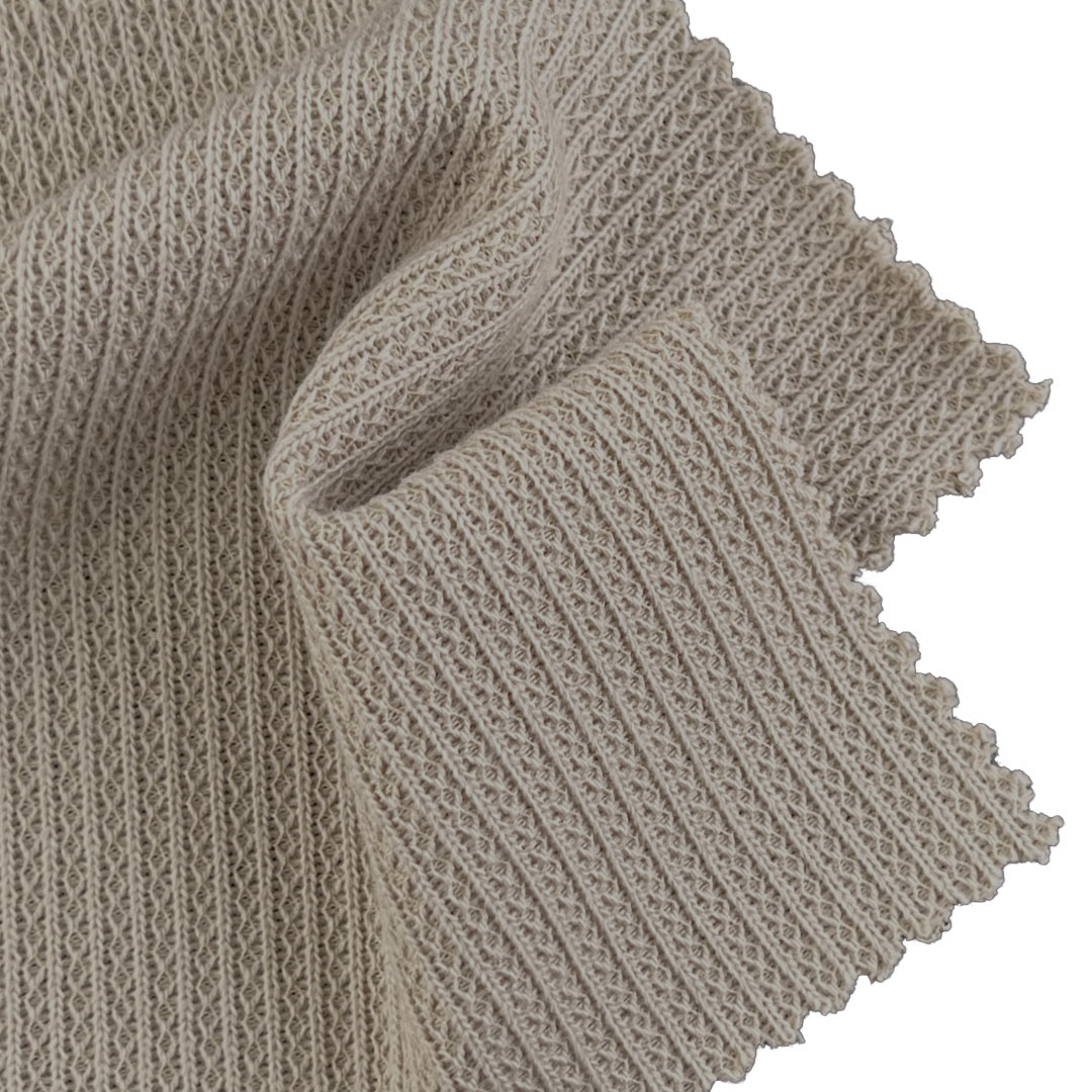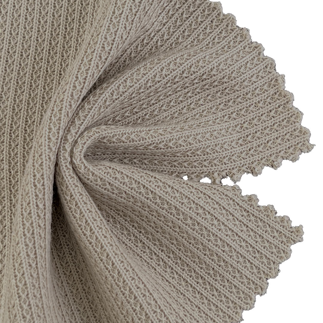 Designed for dimensional texture and natural comfort, this 310gsm cotton-blend cable jacquard knit combines 83% Polyester and 17% Cotton to create a fabric that features intricate jacquard patterns enriched by classic cable knitting, resulting in a soft hand feel ideal for dresses, cardigans, shawls, and sweaters. Polyester ensures durability, colorfastness, wrinkle resistance, and easy care, while Cotton adds breathability, natural softness, and moisture-wicking comfort.