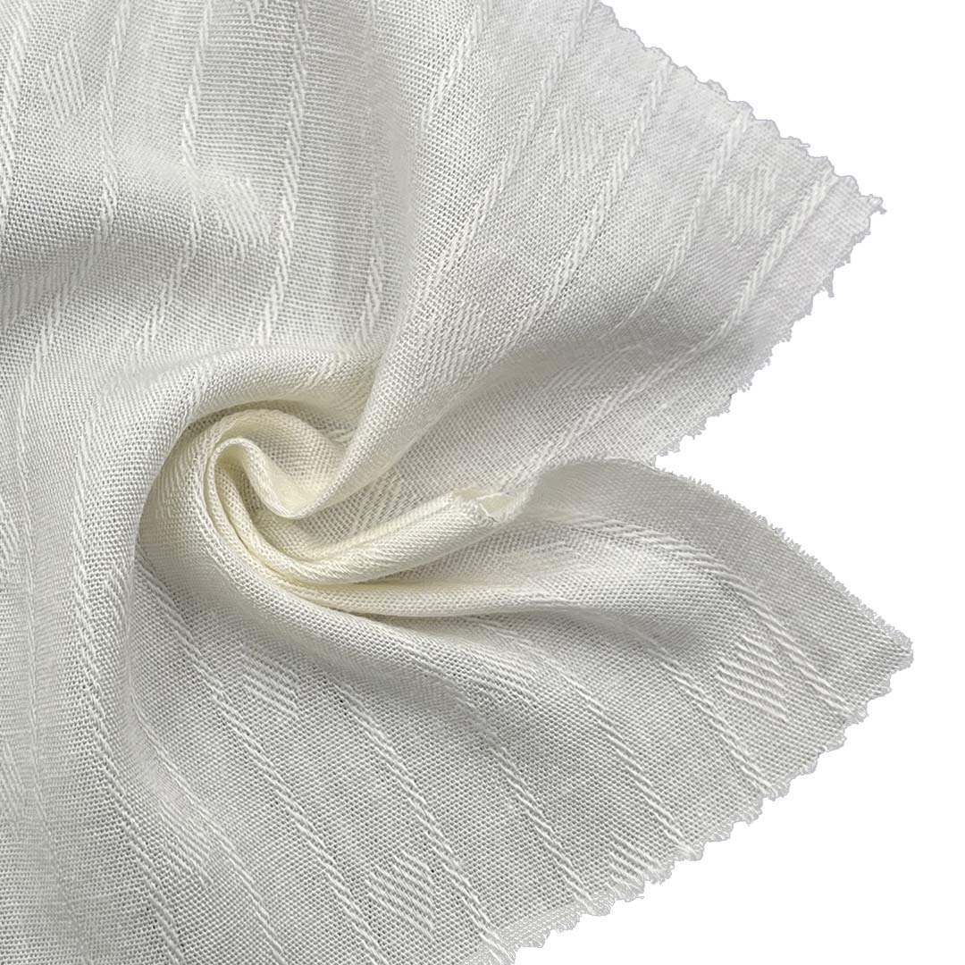 Experience the refined structure and graceful drape of our 115gsm cambric fabric, expertly crafted from an equal blend of 50% Cotton and 50% Viscose. This versatile fabric delivers a smooth, crisp hand feel combined with a beautiful drape, making it ideal for dresses, trench coats, shirts, and a wide range of lining applications including interlining and suit lining. Cotton provides breathability, softness, and structural integrity, while viscose enhances drape, luster, and moisture-wicking comfort.