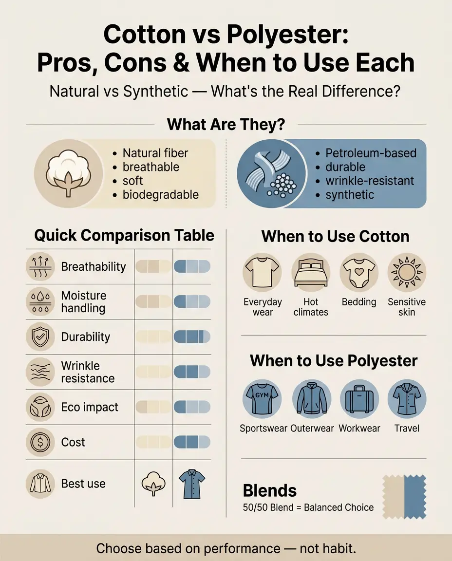 Cotton vs Polyester: Pros, Cons and When to Use Each