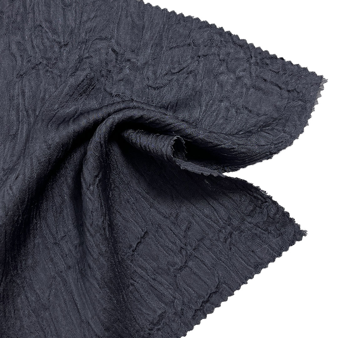 Polyester ensures excellent color retention, resistance to wrinkles (beyond the designed crinkle), shrinking, and abrasion, making it ideal for garments that require both style and longevity. Weighing 140gsm, this lightweight fabric offers a graceful drape and comfortable wear, perfect for flowing dresses, casual T-shirts, and stylish tops that benefit from its unique texture. The crinkled design not only enhances the fabric's aesthetic appeal but also improves breathability and adds a playful, dimensional quality to garments.