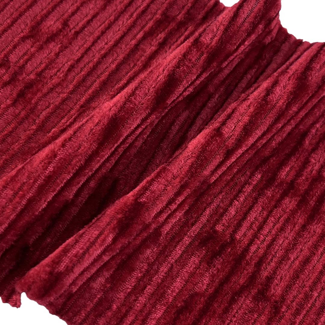 Weighing 240gsm (7.1oz), this distinctive fabric combines 94% polyester and 6% spandex to create a luxurious velvet material with plisse texture, embossed details, and plush hand feel. Designed for skirts, costumes, and creative apparel, this sophisticated blend delivers dimensional elegance through its textured surface while ensuring comfortable flexibility via its generous spandex content. Polyester provides excellent durability and color retention, maintaining the fabric's refined appearance through extended wear.