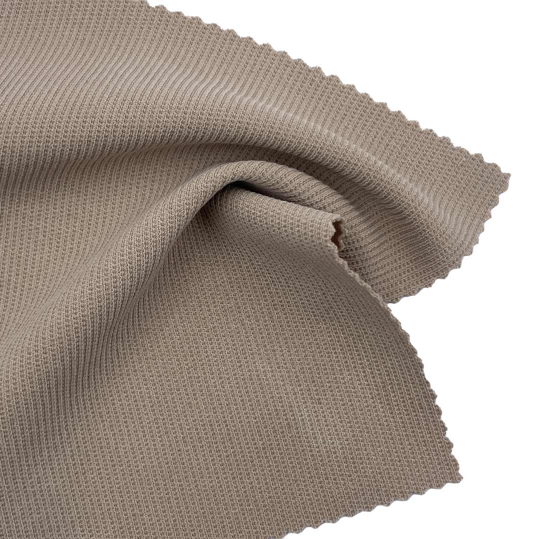 This 300gsm (10.6 oz) fabric combines 60.3% Polyester, 35.6% Modal, and 4.1% Spandex in both Double Knit and Rib constructions, creating a versatile material ideal for shorts and dresses. The Double Knit structure provides a stable, smooth surface with excellent recovery, while the Rib construction adds textured elasticity for comfortable fit and movement. Polyester contributes durability and shape retention, ensuring garments maintain their form through extended wear. Modal, derived from beech tree pulp, offers exceptional softness and breathability, making the fabric gentle against the skin. The 4.1% Spandex provides just the right amount of stretch and recovery, allowing for freedom of movement without losing shape. The 300gsm weight gives the fabric a substantial feel that drapes beautifully in dresses and provides structure in shorts. This medium-heavy weight makes it suitable for year-round wear, offering coverage without bulk. The fabric's moisture-wicking properties help keep the wearer dry and comfortable, while its breathability ensures optimal air circulation. Easy to care for and resistant to pilling, this fabric maintains its quality and appearance after repeated washing. The Double Knit side offers a clean, polished look perfect for dressier styles, while the Rib sections provide visual interest and functional stretch. Perfect for creating comfortable shorts that move with you and elegant dresses that maintain their silhouette. The blend of synthetic and natural fibers creates a fabric that combines the best of both worlds - durability from polyester, softness from modal, and flexibility from spandex. Whether for casual shorts, stylish dresses, or versatile separates, this fabric delivers outstanding performance and comfort for the modern wardrobe.