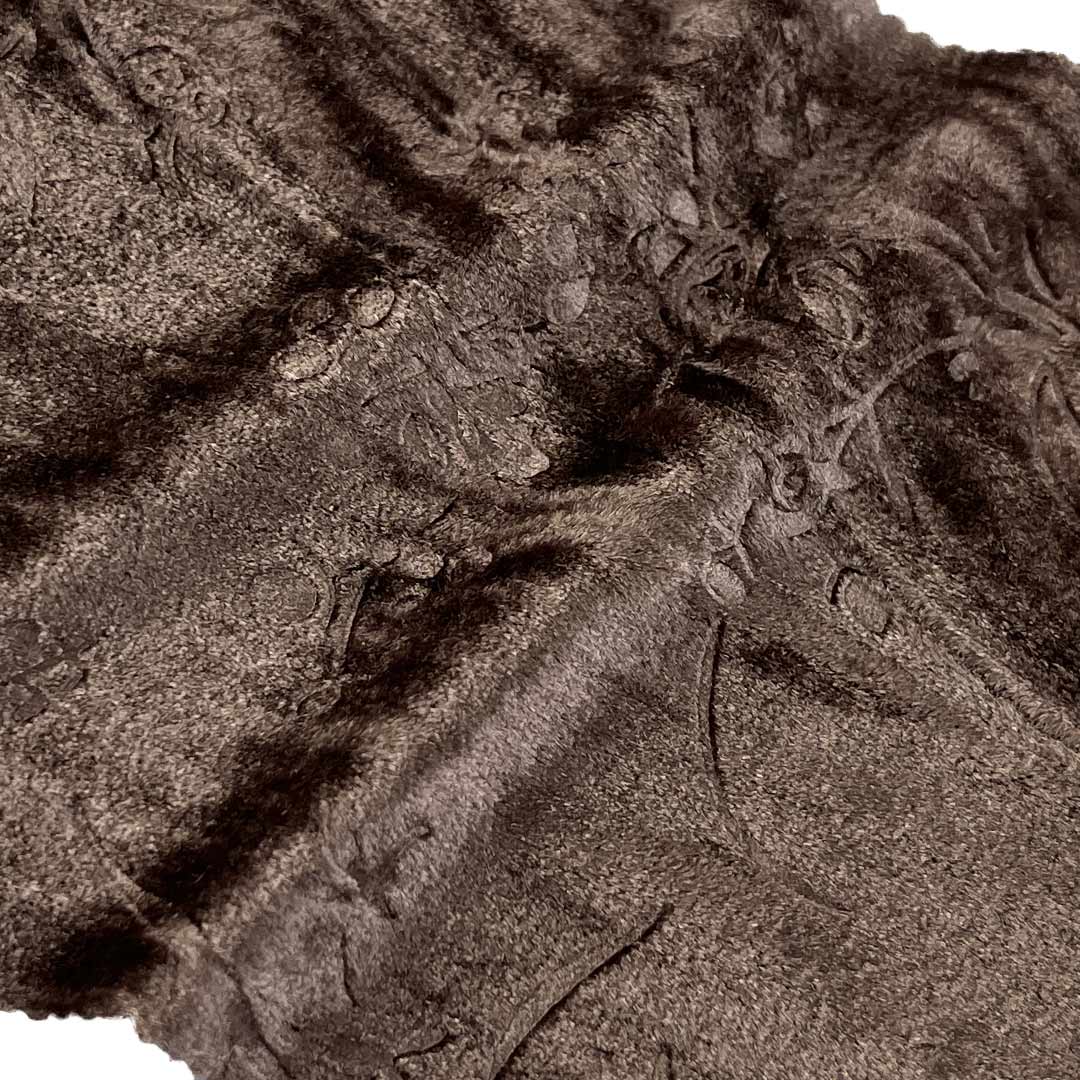 Weighing 230gsm, this medium-weight fabric offers a graceful drape and substantial hand feel, making it ideal for garments that require both elegance and structure. The embossed designs add depth and dimension to the fabric, enhancing its luxurious character without compromising its softness. Easy to care for and machine washable, this Velvet Embossed Fabric retains its intricate patterns, rich texture, and elegant appearance over time.