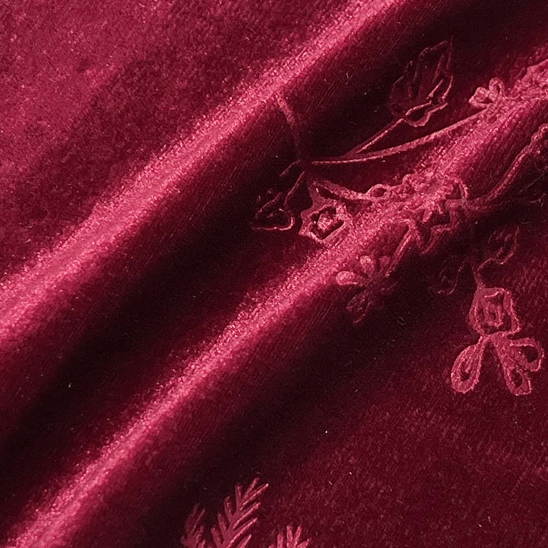 Weighing 240gsm (8.5oz), this distinctive velvet fabric combines 95% polyester and 5% spandex to create a luxurious material with embossed texture and plush surface. Designed for bridal gowns, costumes, and dresses, this sophisticated blend delivers dimensional elegance through its embossed patterns while ensuring comfortable flexibility via its strategic spandex inclusion. Polyester provides excellent durability and color retention, maintaining the fabric's refined appearance through extended wear.