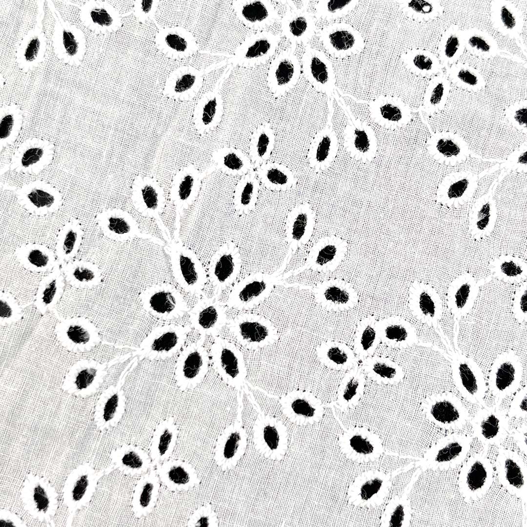 Crafted entirely from 100% premium natural cotton, our Eyelet Fabric represents the pinnacle of textile artistry, where traditional craftsmanship meets contemporary design sensibility. This Fine Cotton Fabric is meticulously engineered with intricate eyelet embroidery—a sophisticated technique that creates exquisitely patterned perforations across the entire surface—resulting in a Textured Embroidered Cloth that offers remarkable visual depth, tactile richness, and a breathable openwork structure ideal for warm-weather apparel. The fabric’s Breathable Cotton Textile construction facilitates superior airflow, making it exceptionally well-suited for a range of garments including dresses, tops, skirts, and blouses that require both style and comfort in warmer climates.