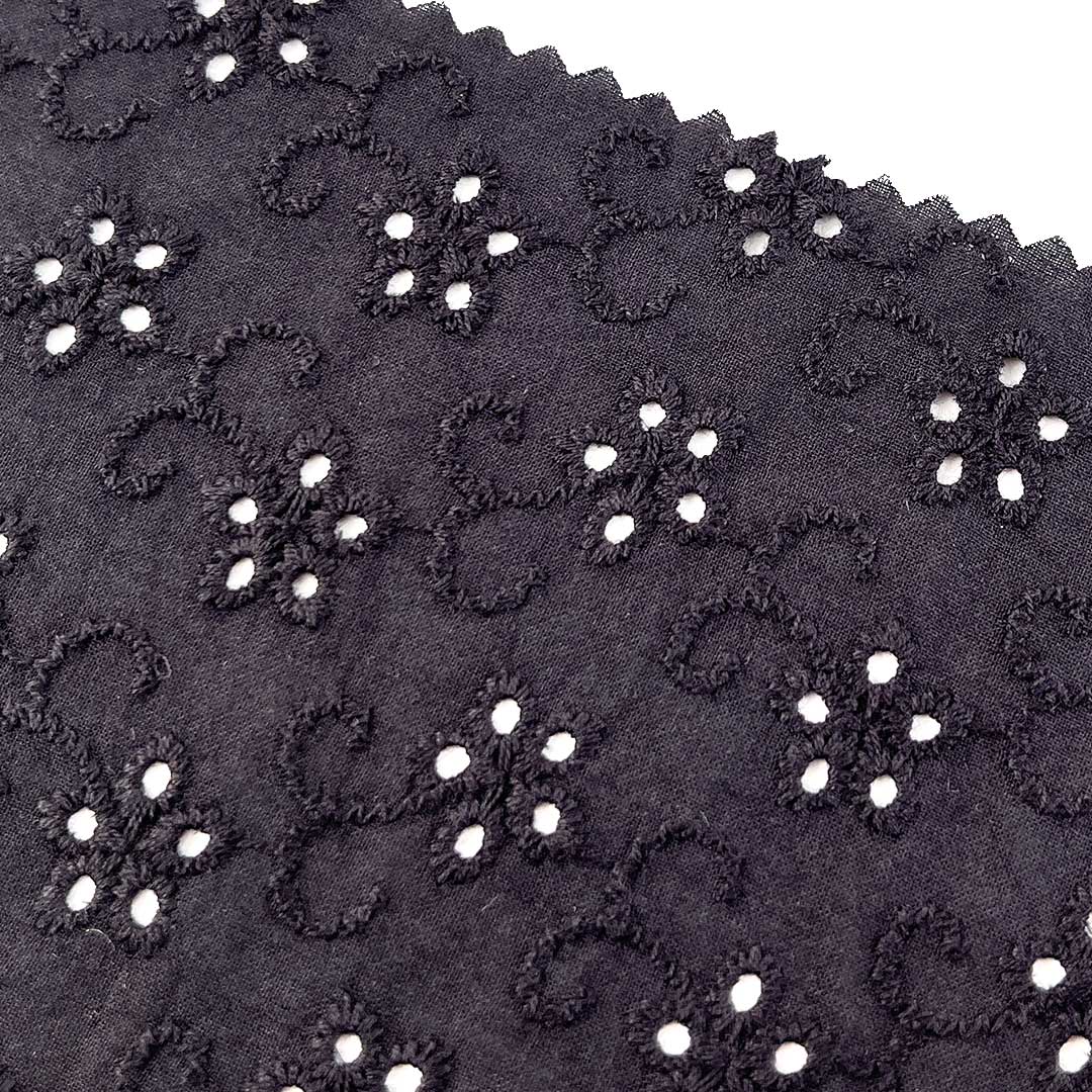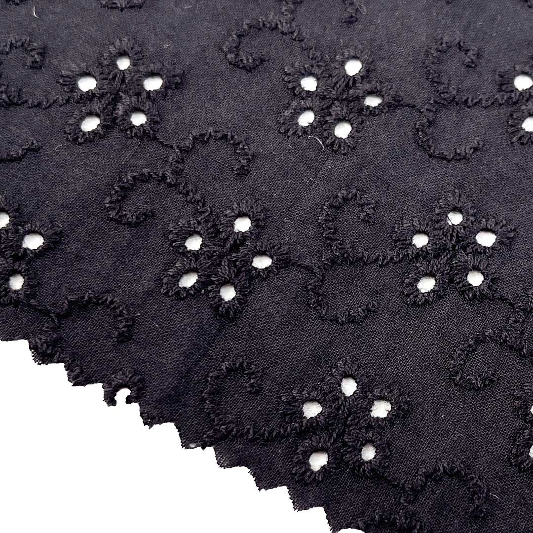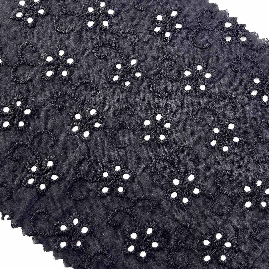 Crafted entirely from 100% premium cotton, our Eyelet Fabric embodies the perfect synthesis of natural comfort and artisanal textile craftsmanship. This Fine Cotton Fabric showcases meticulously crafted eyelet embroidery—an intricate technique that creates delicate, patterned perforations across the surface—yielding a Textured Embroidered Cloth rich in visual and tactile depth, paired with a breathable, openwork structure that ensures excellent airflow.