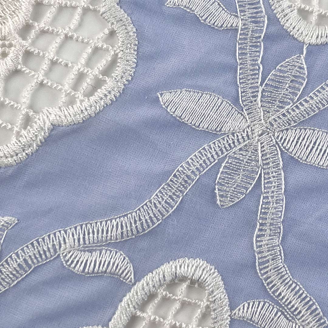Crafted entirely from 100% premium cotton, this elegant eyelet fabric showcases the artistic technique of exquisite water-soluble embroidery material, where openwork patterns transition in depth and density to create a visually dynamic and tactilely rich texture that enhances both breathability and aesthetic appeal. The pure cotton composition ensures unparalleled softness, superior moisture-wicking performance, and gentle comfort against the skin, making it an ideal choice for sensitive wearers and extended daily use.
