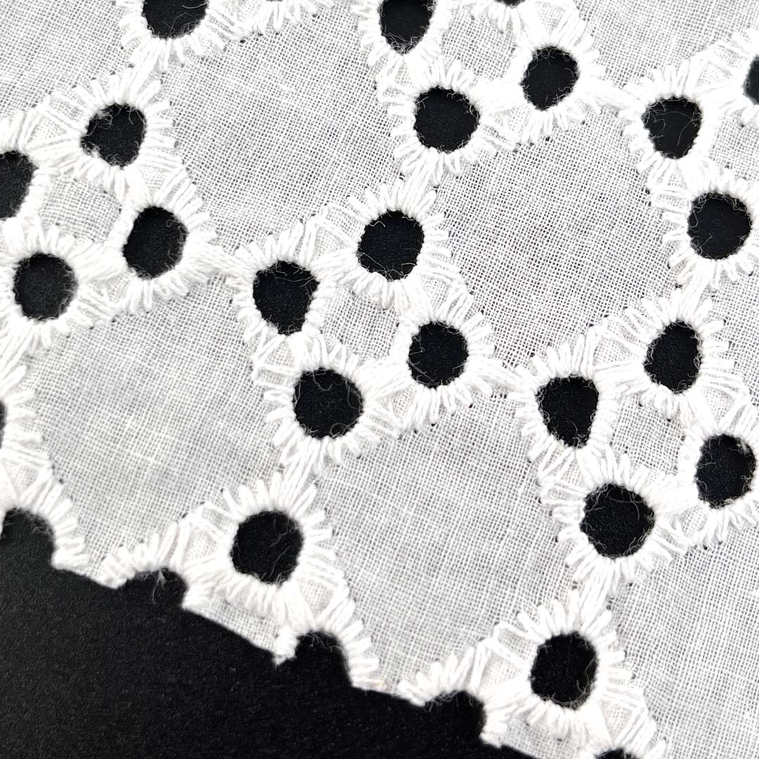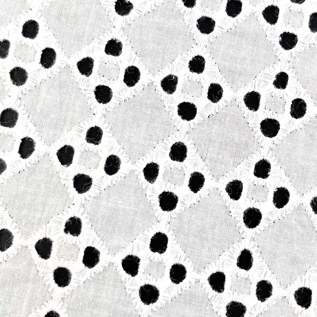 Crafted entirely from 100% premium natural cotton, our Eyelet Fabric represents the perfect synthesis of textile artistry and functional design. This Fine Cotton Fabric features intricate eyelet embroidery—a meticulous technique that creates delicate patterned perforations across the surface—resulting in a Textured Embroidered Cloth with remarkable visual depth, tactile richness, and a breathable openwork structure ideal for warm-weather garments. The fabric’s Breathable Cotton Textile construction ensures optimal airflow, making it exceptionally suitable for a variety of apparel including dresses, Tops, skirts, and blouses that demand both style and comfort.
