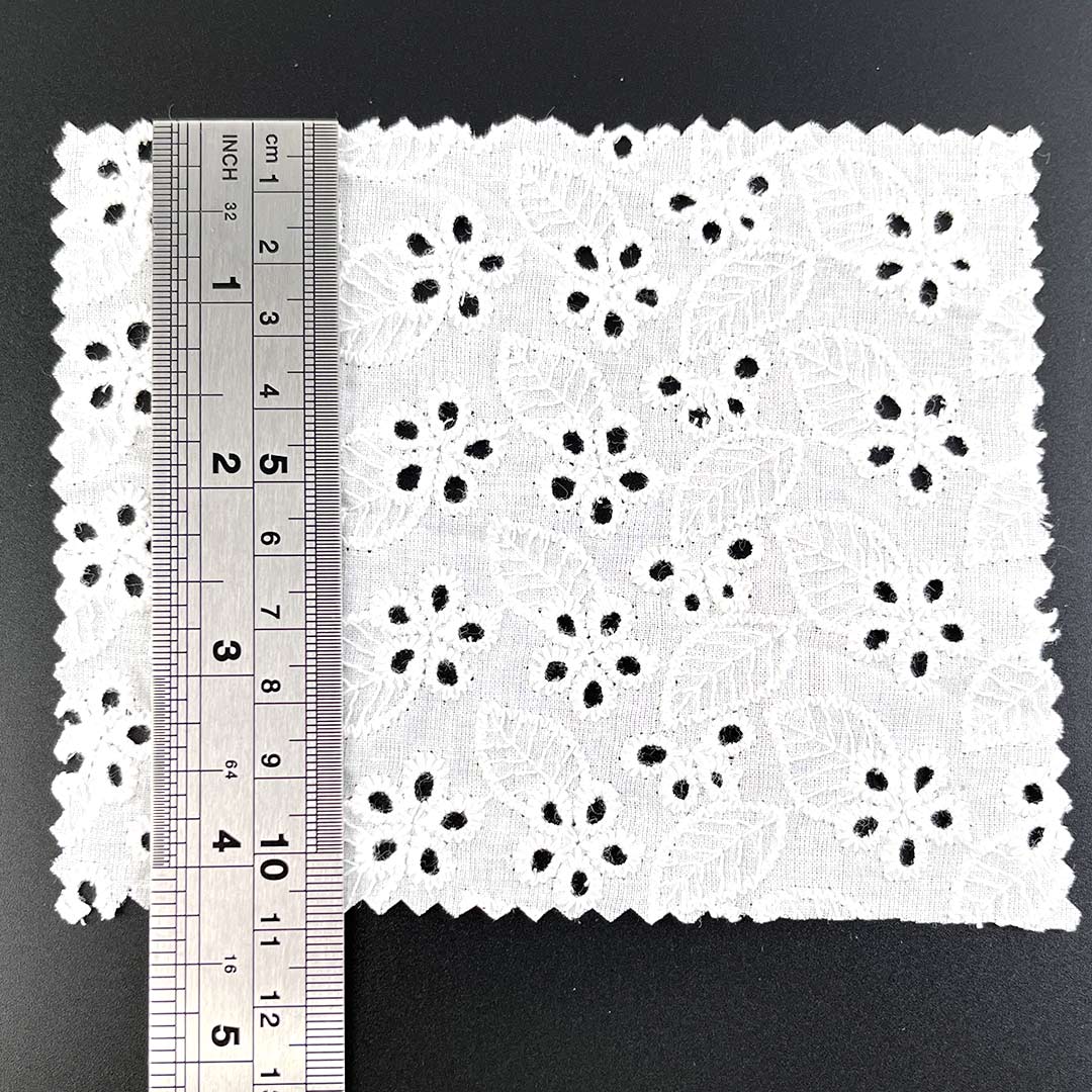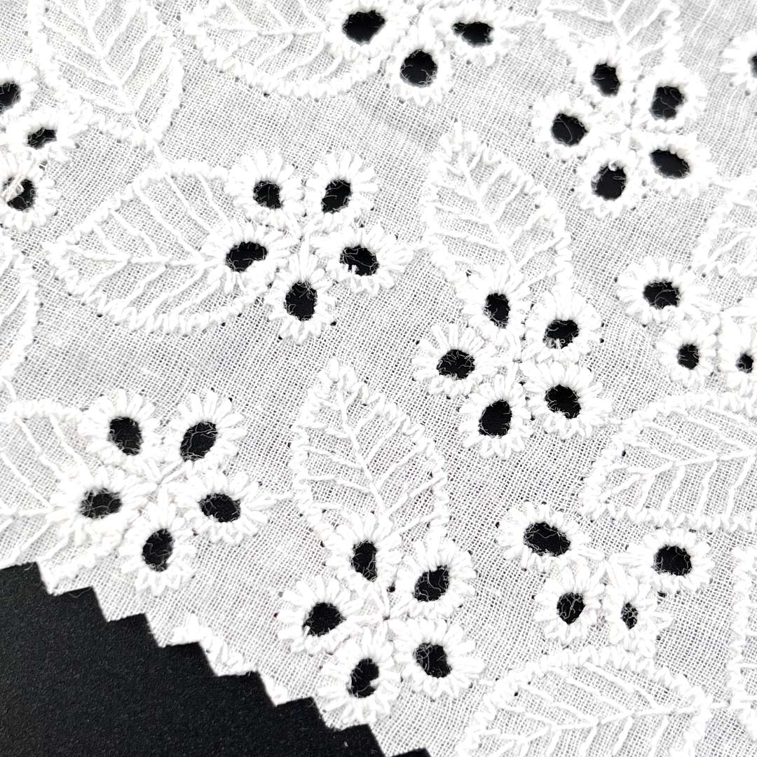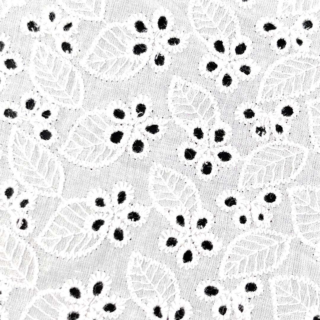 Crafted entirely from 100% premium natural cotton, our Eyelet Fabric represents the pinnacle of textile artistry, where traditional craftsmanship meets contemporary design sensibility. This Fine Cotton Fabric is meticulously engineered with intricate eyelet embroidery—a sophisticated technique that creates exquisitely patterned perforations across the entire surface—resulting in a Textured Embroidered Cloth that offers remarkable visual depth, tactile richness, and a breathable openwork structure ideal for warm-weather apparel.