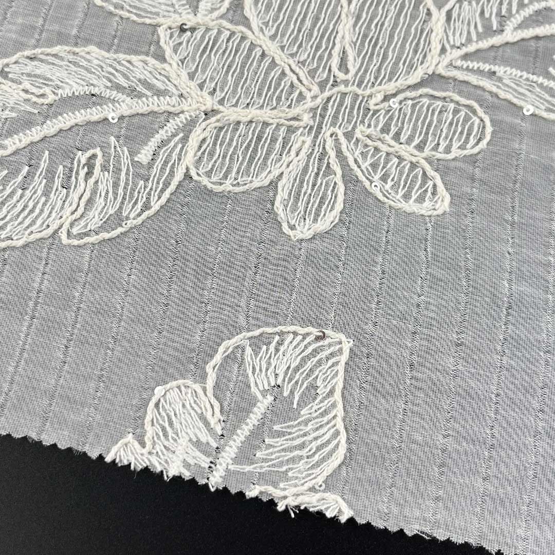 Tencel provides a luxuriously Soft Fabric hand feel, excellent moisture-wicking properties, and a fluid drape, while polyamide contributes enhanced durability, shape retention, and resilience. The eyelet embroidery introduces a Delicate Embroidered Fabric sophistication, rendering the fabric adaptable for everything from casual daytime ensembles to refined evening attire. Whether utilized as Fashion Embroidered Cloth for contemporary Tops, as Floral Embroidered Fabric for feminine dresses, or as Bridal Lace Fabric for special occasions, this Eco-Friendly Textile seamlessly aligns with sustainable fashion values through Tencel’s biodegradable sourcing and polyamide’s longevity.