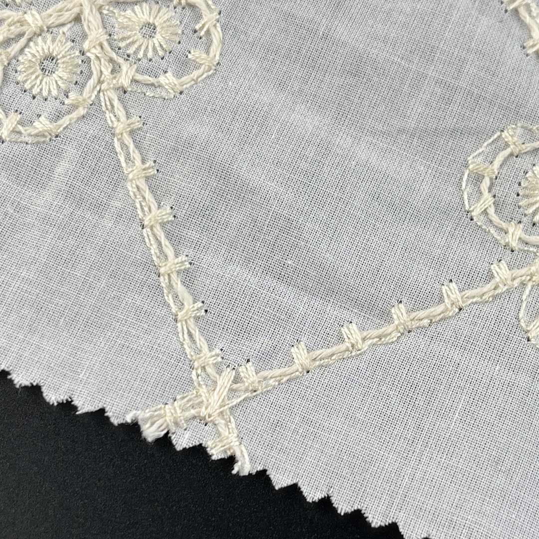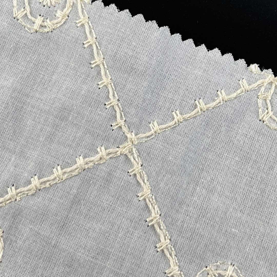 Lightweight and fluid, this fabric drapes with graceful ease, perfectly suited for crafting stylish tops and chic skirts that merge ethical craftsmanship with modern femininity. The water-soluble technique produces intricate, lace-like patterns that provide a delicate tactile feel while promoting excellent airflow—key for comfortable wear in warmer conditions. Each embroidered motif enhances the fabric’s dimensional beauty, adding depth and sophistication without compromising its eco-conscious integrity. Easy to care for and machine washable, this fabric maintains the clarity of its embroidered details, vibrant color retention, and luxurious hand-feel over time.