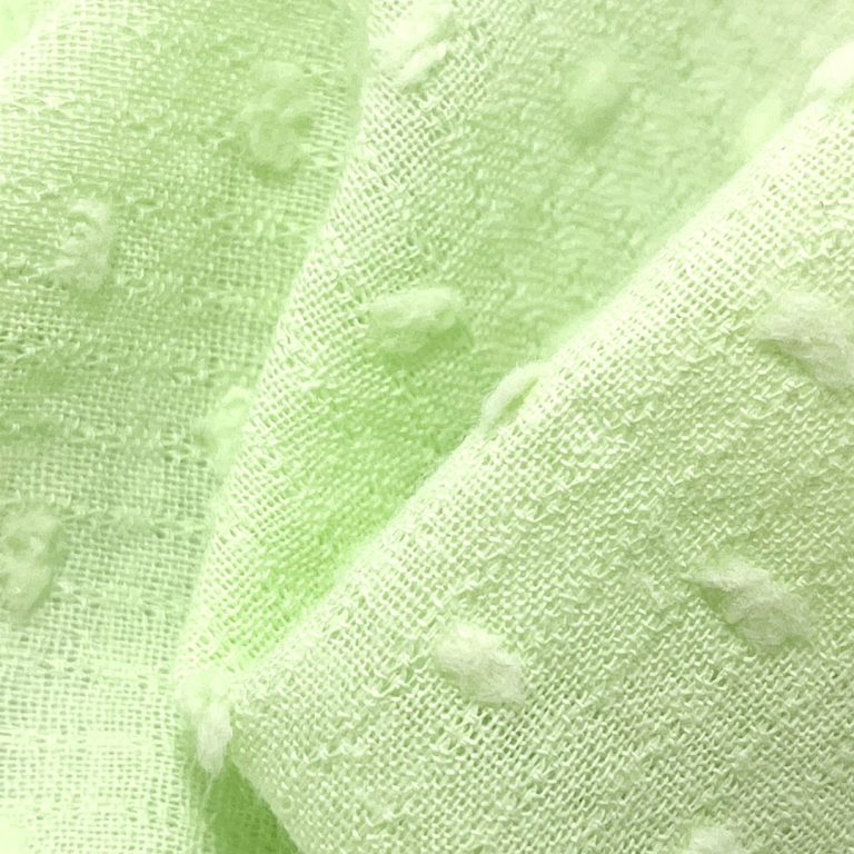 Dotted Swiss fabric by the yard is a lightweight, sheer textile distinguished by its evenly spaced raised dots. Typically ranging from 60gsm to 120gsm, it is woven from cotton, polyester, or cotton–poly blends, offering a soft handfeel with a crisp yet airy structure. The dotted surface adds subtle texture and visual charm, making this fabric popular for delicate apparel and light home décor.