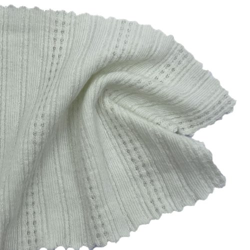 This 210gsm (7.4 oz) fabric innovatively combines Pointelle and Jacquard constructions in a balanced blend of 48% Cotton, 48% Polyester, and 4% Spandex, making it an excellent choice for dresses and tops. The Pointelle sections feature delicate, open-knit patterns that enhance breathability and add a feminine, textured visual appeal, ideal for creating lightweight and airy garments. Simultaneously, the Jacquard areas provide intricate woven designs that introduce sophistication and structural interest without adding weight. Cotton delivers natural softness, breathability, and comfort against the skin, while Polyester ensures durability, shape retention, and resistance to wrinkles and shrinkage. The 4% Spandex offers essential stretch and recovery, allowing for freedom of movement and a comfortable, flattering fit that maintains its shape throughout the day. Weighing 210gsm, this fabric strikes a perfect balance between lightness and substance, making it versatile for both draped dresses and structured tops. The openwork of the Pointelle design promotes ventilation, making it ideal for warm-weather styles, while the Jacquard elements add a touch of elegance suitable for more refined occasions. This fabric is easy to care for, machine washable, and designed to retain its detailed patterns and color vibrancy after repeated laundering. Perfect for creating stylish summer dresses, chic tops, and versatile separates that blend fashion with function. The combination of natural and synthetic fibers ensures both comfort and longevity, making it a reliable choice for everyday wear that doesn’t compromise on style.