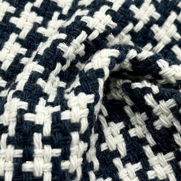 Embrace timeless sophistication with our 630gsm Houndstooth Fabric, crafted from 10% Wool and 90% Polyester. This heavyweight fabric features the classic houndstooth pattern, characterized by its broken checks and textured weave, creating a visually striking surface with a distinctly crisp hand feel. The wool content adds natural warmth, softness, and a touch of luxury, while the polyester ensures exceptional durability, shape retention, and resistance to wrinkles and shrinkage.
