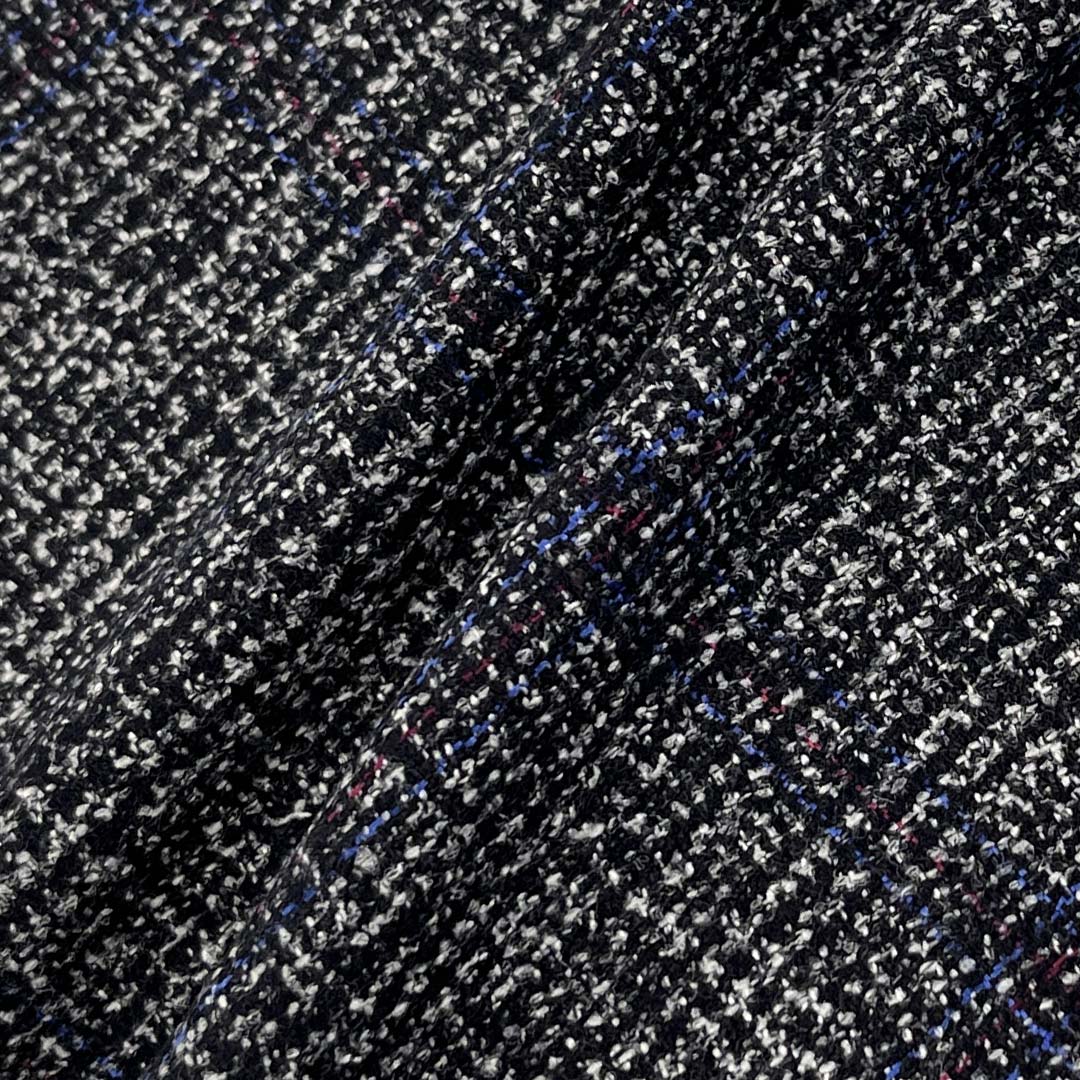 Polyester provides exceptional durability and reliable shape retention, maintaining sharp, commanding silhouettes through extended professional wear. Viscose contributes breathability and subtle softness, enhancing overall comfort without compromising the fabric's crisp characteristics. The fine weave and substantial weight work in harmony to provide excellent body and a polished finish, making this material particularly suitable for creating authoritative blazers. The crisp hand feel offers a distinctive tactile experience that reinforces the fabric's professional character.