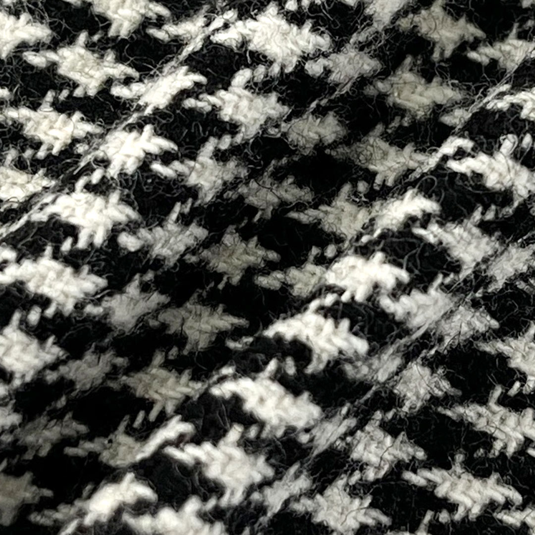 Designed for structural integrity and timeless style, our 350gsm Polyester Tweed Houndstooth Fabric is crafted entirely from 100% polyester to deliver a dense, textured material that excels in structured apparel and premium decor applications. This Textured Tweed Fabric features the classic Houndstooth pattern woven into a sturdy, Shape Retention construction, making it ideal for structured dresses, supportive cushions, tailored blazers, elegant packaging, and statement coats.