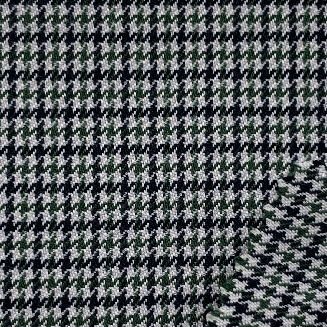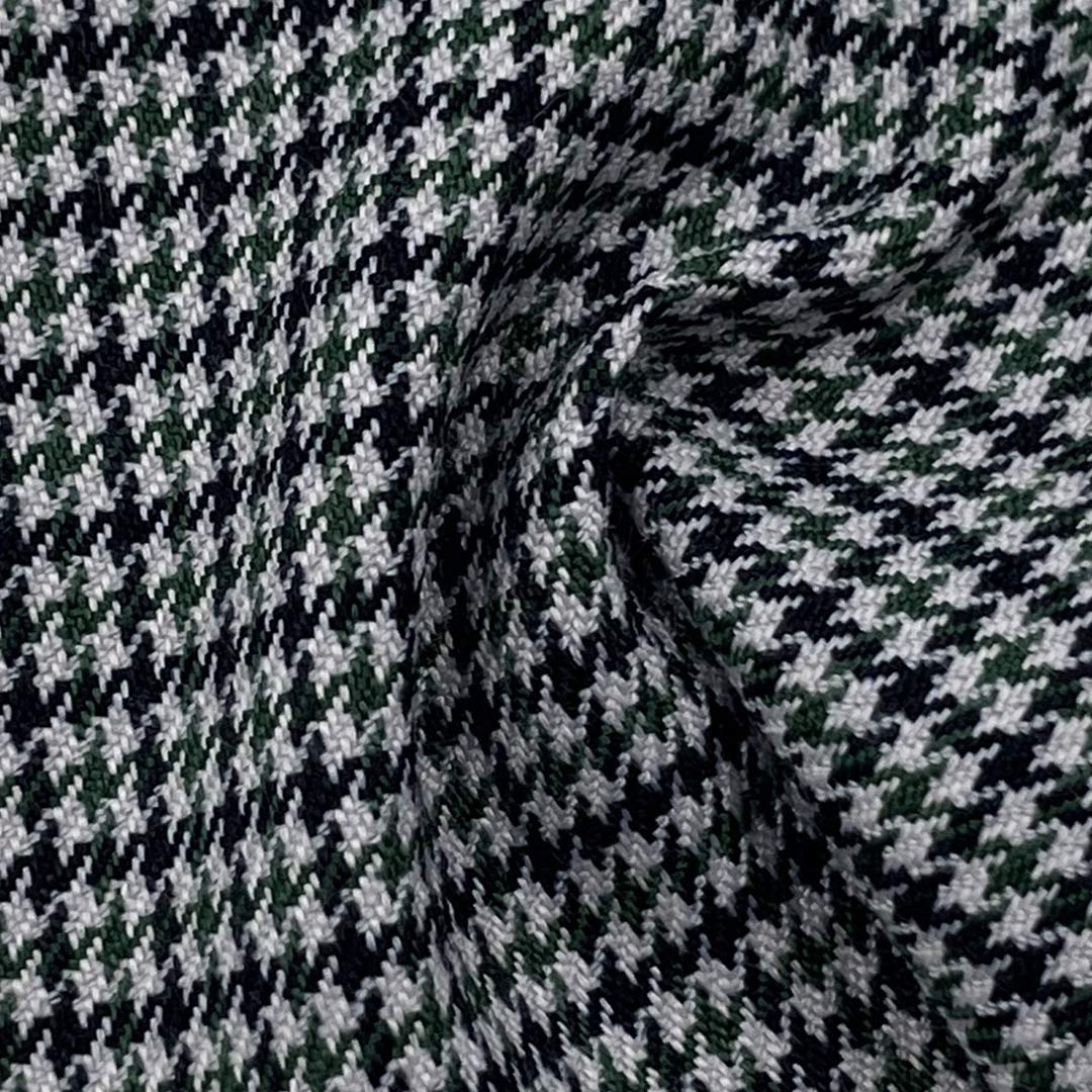 Elevate your designs with our 350gsm Houndstooth Fabric, a sophisticated blend of 40% Polyester and 60% Viscose that masterfully combines timeless pattern with modern performance. This heavyweight fabric features the classic houndstooth check pattern woven into a textured surface that adds visual depth and tactile interest to any garment. The high viscose content ensures a soft, breathable, and fluid drape, while the polyester provides exceptional durability, shape retention, and resistance to wrinkles, ensuring the fabric maintains its structure and appearance over time.