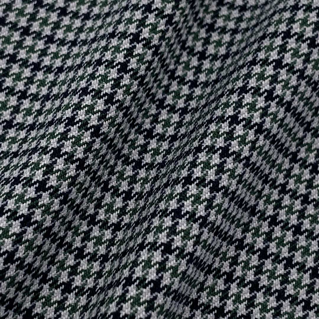 Weighing 350gsm, this substantial fabric offers excellent coverage and warmth, making it ideal for structured dresses and tailored blazers that demand both elegance and resilience. The intricate houndstooth weave not only creates a distinctive aesthetic but also enhances the fabric's ability to hold its shape, preventing stretching or distortion even with frequent wear. Easy to care for and machine washable, this fabric retains its vibrant patterns, rich texture, and polished finish through repeated use.