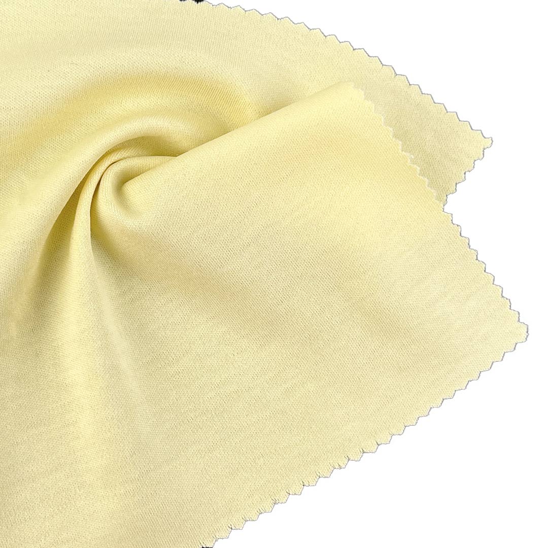 This 180gsm mercerized interlock fabric features a refined blend of 65% Cotton, 30% Modal, and 5% Spandex. The mercerization process gives the fabric a lasting sheen and exceptionally smooth hand feel. Cotton fibers provide excellent breathability and moisture absorption, while Modal enhances the fabric's softness and drape. Spandex adds necessary stretch for unrestricted comfort. The interlock construction creates identical smooth surfaces on both sides, resulting in a dense yet soft and skin-friendly texture.