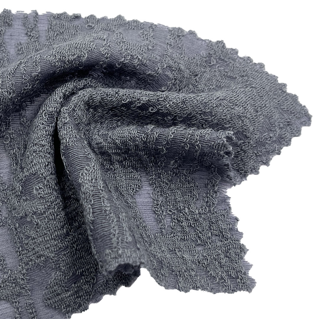 Weighing just 120gsm, this lightweight fabric is ideal for sweaters and cardigans, offering cozy comfort without bulk and allowing for graceful drape. The textured jacquard designs add a touch of sophistication to garments, elevating their aesthetic appeal. Easy to care for and machine washable, this fabric retains its delicate patterns, vibrant colors, and soft texture through repeated use.