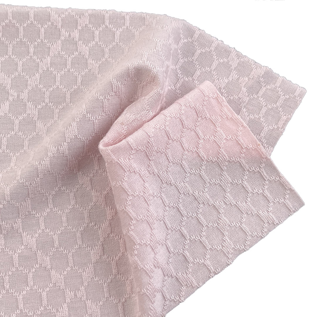 Indulge in luxurious comfort with our 190gsm Jacquard Fabric, crafted from a premium blend of 95% Viscose and 5% Spandex. This elegant fabric features intricate jacquard patterns that create a visually captivating textured surface while delivering an exceptionally soft hand feel. The high viscose content ensures excellent breathability, moisture-wicking properties, and a fluid drape that moves gracefully with the body, making it ideal for dresses, sleepwear, T-shirts, and tops.