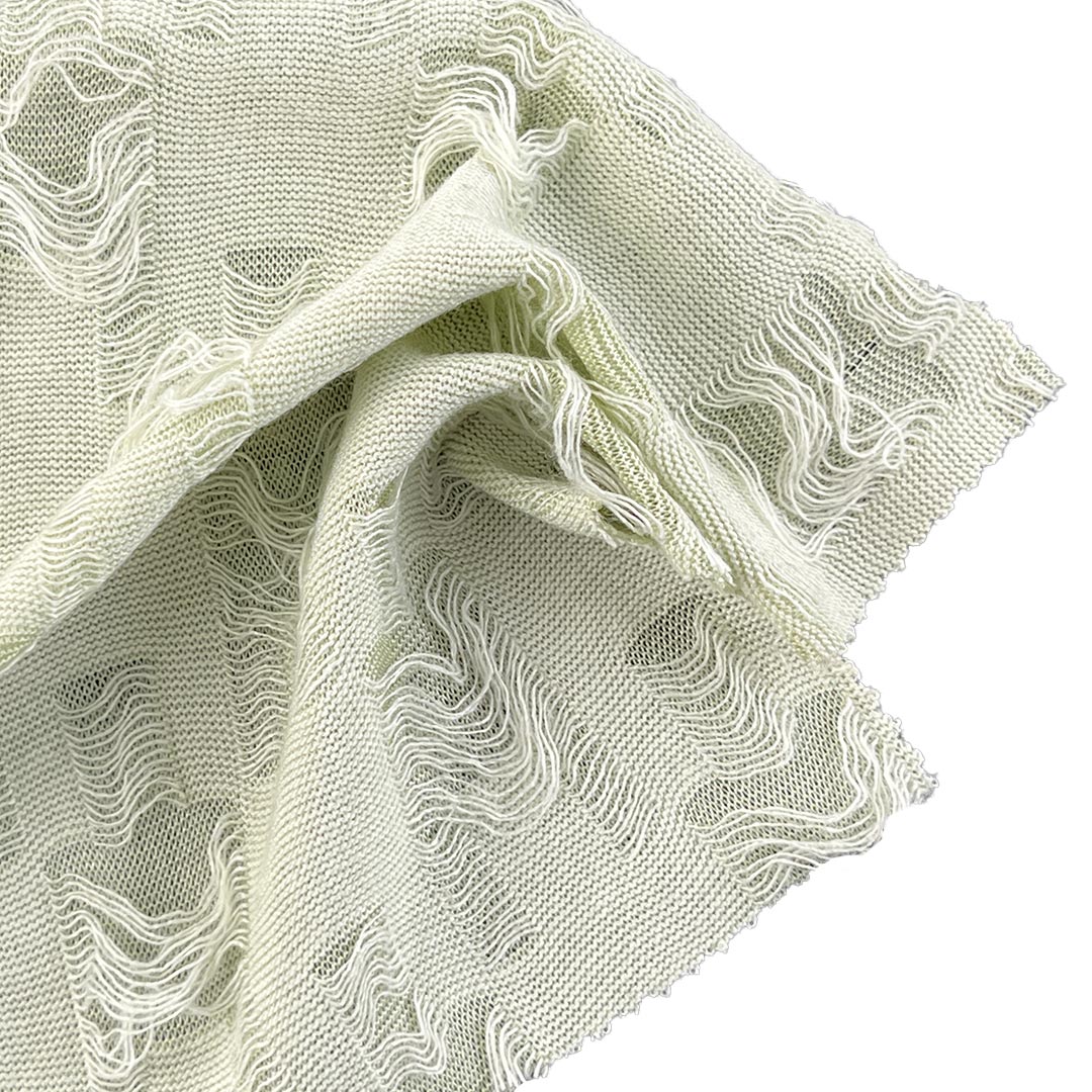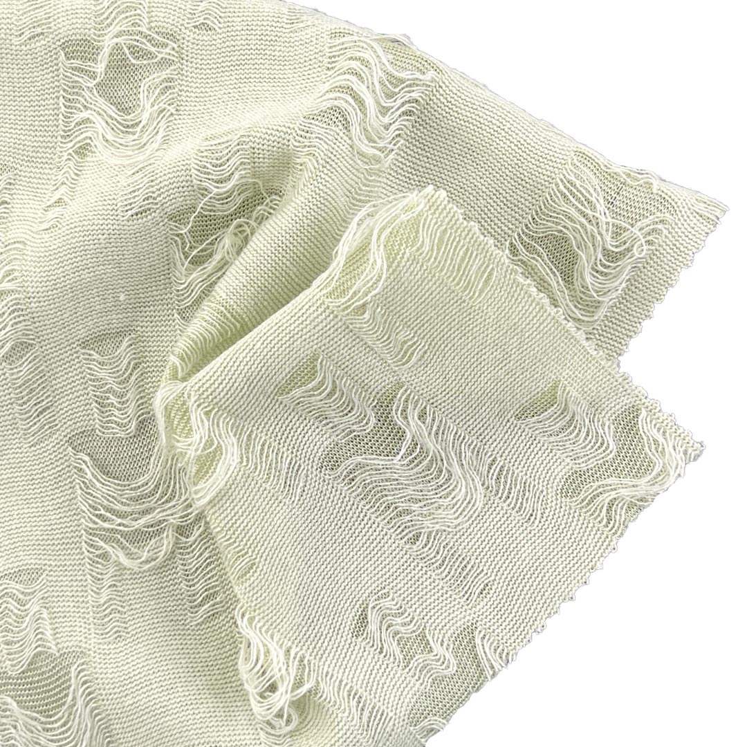 During garment construction, the fabric demonstrates good workability, cutting cleanly and sewing smoothly while preserving pattern alignment. Ideal for casual wear, weekend outfits, and fashion-forward styles, this jacquard fabric retains its appearance with easy care. The harmonious blend of durability, softness, and decorative texture makes this material an excellent choice for designers and consumers seeking patterned fabrics that offer both aesthetic appeal and everyday practicality for their T-shirts, skirts, and crop tops.