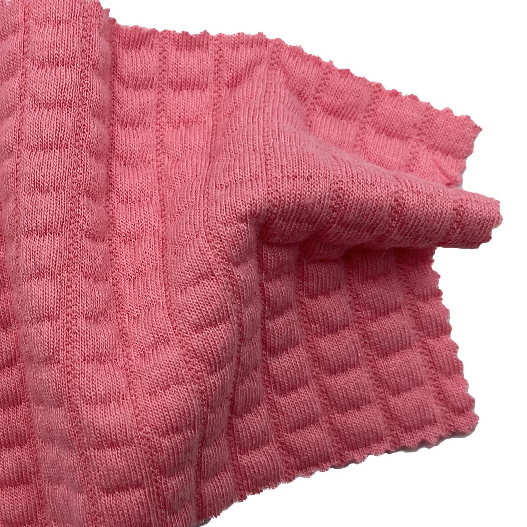 This 350gsm fabric combines Waffle and Jacquard constructions with a blend of 90% Polyester, 8% Viscose, and 2% Spandex to deliver a luxuriously soft hand feel, making it ideal for sweatshirts, suits, and sportswear. The Waffle texture creates a distinctive grid pattern that enhances breathability and adds visual interest, while the Jacquard weave introduces intricate designs for a sophisticated aesthetic. Weighing 350gsm, this medium-heavy fabric provides substantial warmth and durability, perfect for structured suits and cozy sweatshirts. The Polyester ensures excellent shape retention, color vibrancy, and resistance to wrinkles, while the Viscose contributes a soft, smooth drape against the skin. The Spandex offers gentle stretch and recovery, allowing for ease of movement in active sportswear and comfortable sweatshirts. Designed for versatility, this fabric maintains its soft texture and structural integrity through repeated washing, making it a reliable choice for high-quality garments that balance style and functionality.