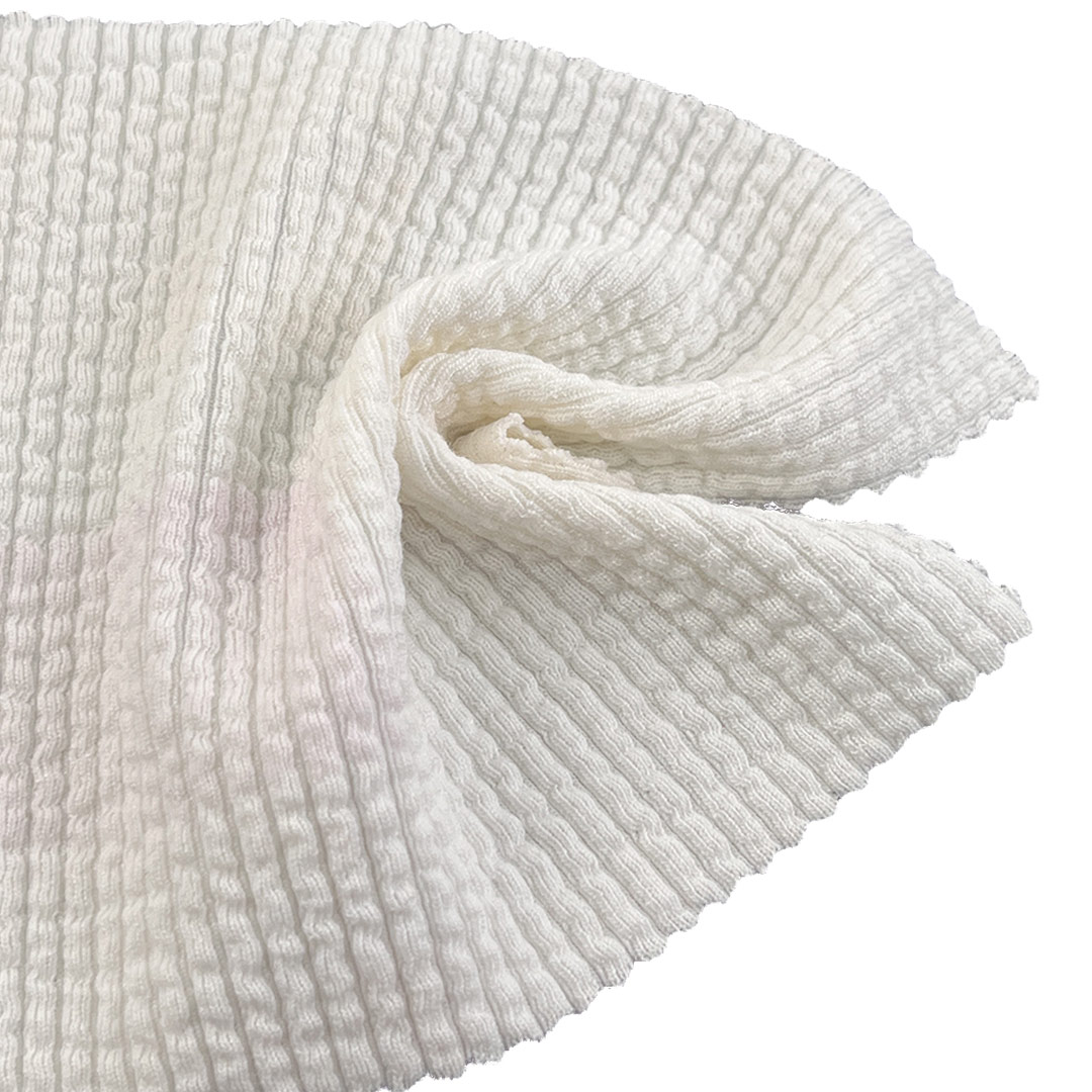 Experience the perfect fusion of artistry and comfort with our 350gsm Jacquard Fabric, meticulously crafted from 70% Cotton and 30% Polyester. This heavyweight fabric features intricate jacquard woven patterns that create a rich textured surface while maintaining an exceptionally soft hand feel against the skin. The high cotton content ensures superior breathability, moisture-wicking properties, and natural softness, while the polyester enhances durability, shape retention, and resistance to pilling.
