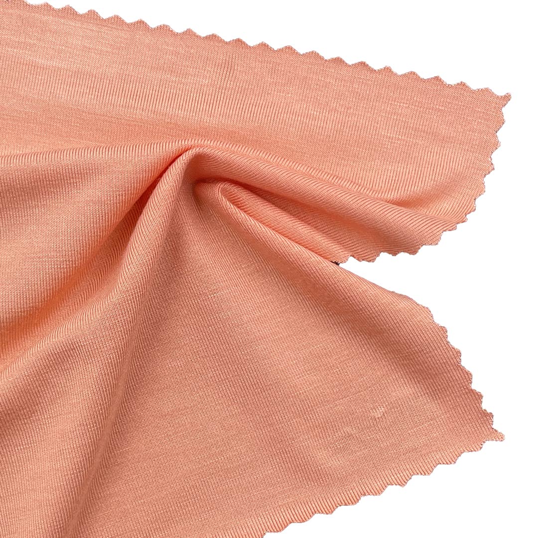 The high viscose content ensures excellent moisture-wicking properties and temperature regulation, keeping you comfortable in various climates. With 6% Spandex woven throughout, the fabric delivers outstanding elasticity and recovery in all directions, allowing complete freedom of movement without losing its shape. Weighing just 180gsm, this lightweight fabric drapes beautifully and feels almost weightless against the skin, making it ideal for flowing dresses and comfortable T-shirts. The smooth single jersey construction provides a gentle touch against the skin, while the 4-way stretch ensures a perfect fit that adapts to your every move. Easy to care for and machine washable, this fabric becomes even softer with each wash while retaining its vibrant colors and structural integrity.