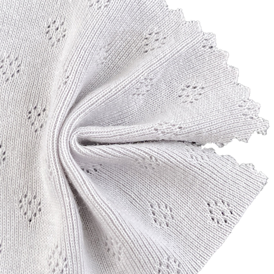 Whether designing chic tops for casual sophistication or lightweight cardigans for elegant layering, this Pointelle Fabric empowers you to create garments that celebrate pure cotton comfort, artistry, and enduring style.