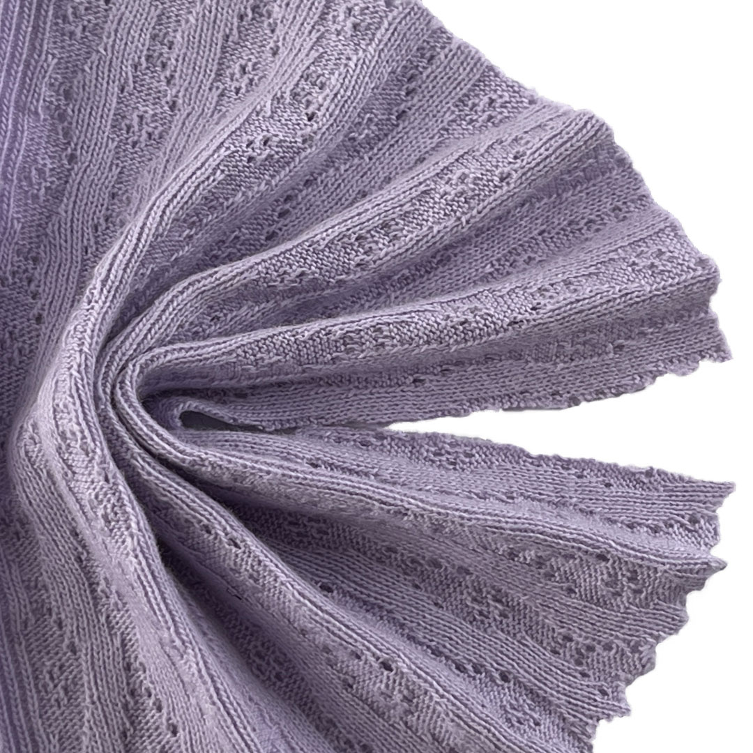Experience the delicate artistry and natural comfort of our 230gsm pointelle fabric, crafted entirely from 100% premium cotton. This exquisite fabric features an intricate pointelle knit construction with decorative, lace-like eyelets that create a textured, airy aesthetic while delivering a luxuriously soft hand feel. The all-cotton composition ensures exceptional breathability, moisture-wicking properties, and a graceful drape, making it ideal for tops and long sleeve shirts that blend timeless elegance with everyday versatility.