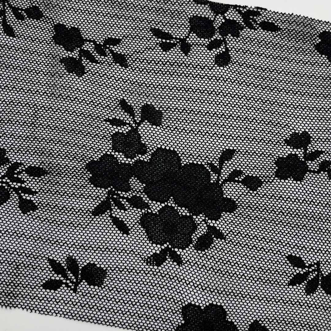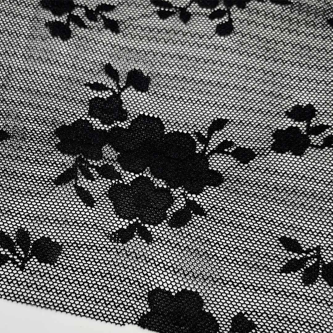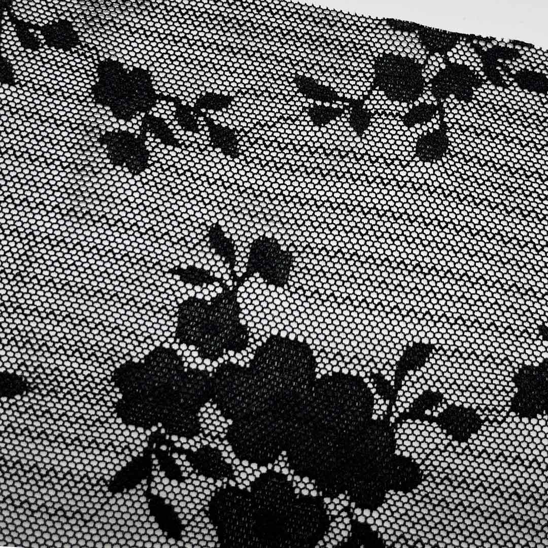 Nylon adds essential strength, elasticity, and durability, providing support and shape retention while ensuring the delicate lace patterns remain intact over time. Featuring intricate openwork designs characteristic of fine lace, this fabric imbues bridal and lingerie garments with timeless romance and sophistication. Its breathable nature makes it perfect for wedding dresses that require both grace and comfort, as well as for underwear that prioritizes softness and wearability. The lightweight, airy construction allows for fluid movement and a comfortable fit, whether used as an all-over fabric, a decorative overlay, or an accent trim.