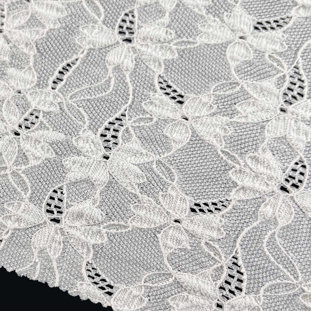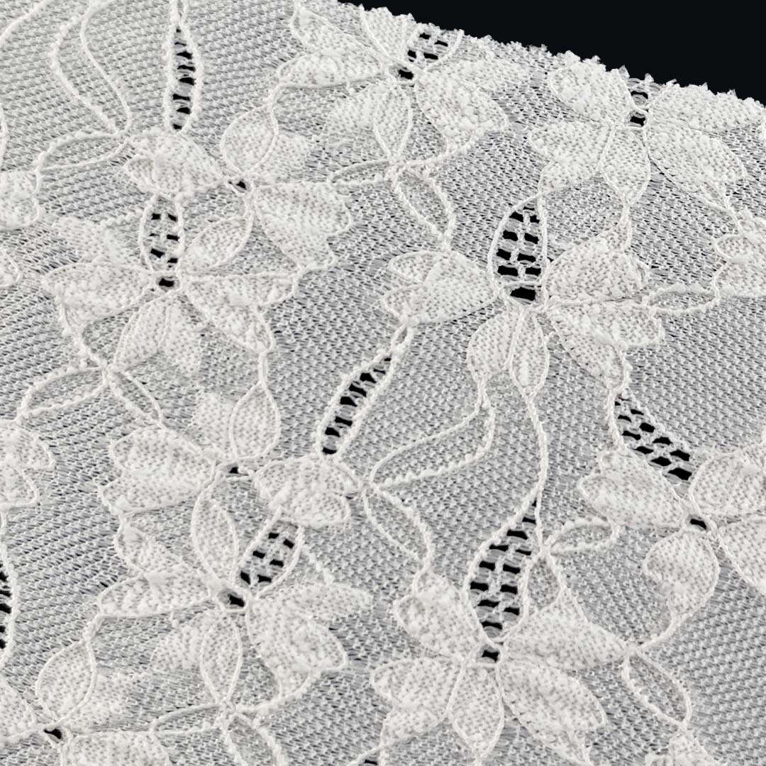 Experience the perfect fusion of elegance, comfort, and breathability with our stretch lace fabric, expertly crafted from 90% Polyester and 10% Spandex. This exquisite fabric features intricate lace patterns that create a romantic and sophisticated aesthetic, making it an ideal choice for both graceful dresses and breathtaking bridal gowns. The high polyester content ensures durability, shape retention, and a polished finish that highlights the lace's delicate artistry, while the 10% Spandex offers gentle stretch and recovery for a comfortable, flattering fit.