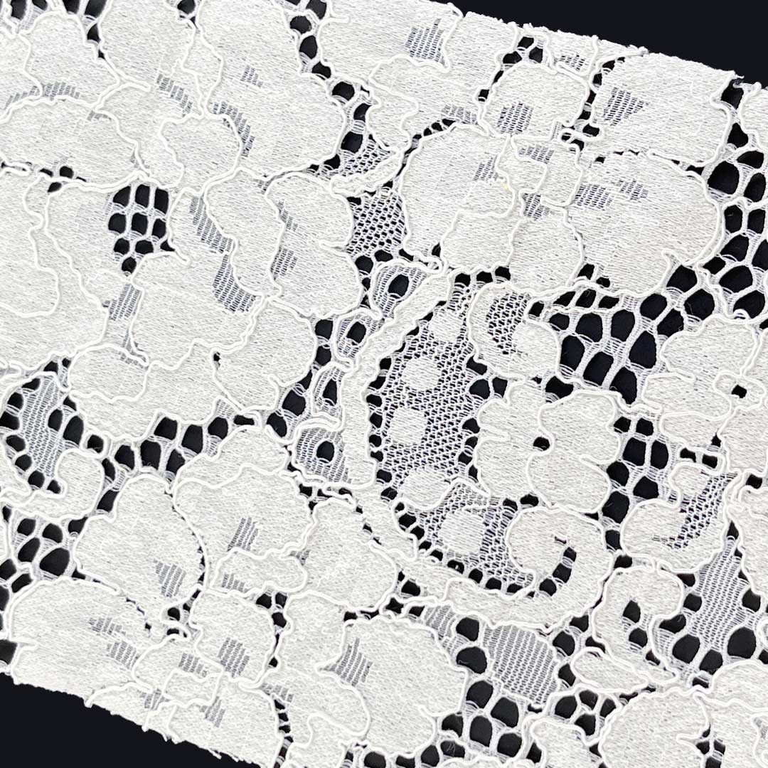 Crafted from a natural-focused blend of 30% Nylon and 70% Cotton, this nylon-spandex lace material combines durability with exceptional comfort, making it an ideal choice for dresses and tops. The high cotton content ensures superior softness, breathability, and moisture-wicking properties, providing a gentle feel against the skin and making it suitable for extended daily wear.