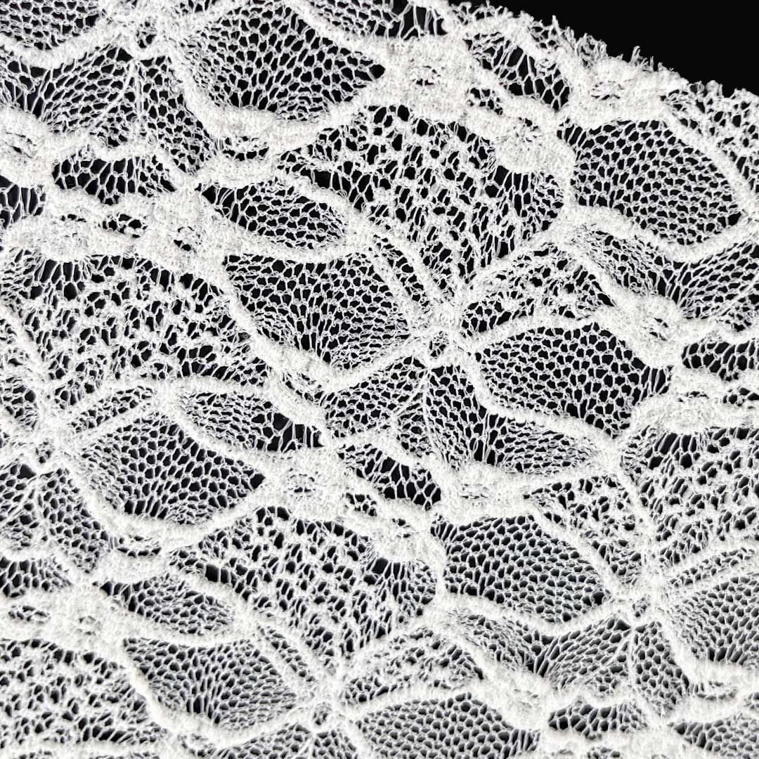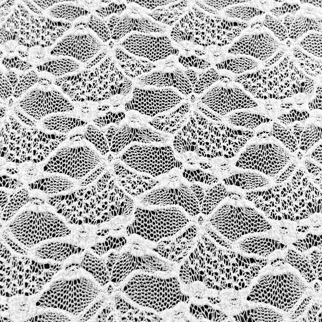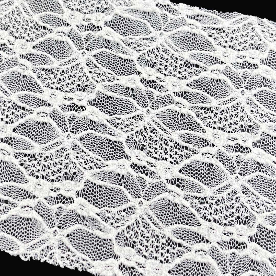 Experience the perfect fusion of elegance, comfort, and breathability with our full-width lace fabric, expertly crafted from 90% Polyamide and 10% Spandex. This exquisite fabric features intricate lace patterns that create a romantic and sophisticated aesthetic, making it an ideal choice for both breathtaking wedding dresses and chic tops. The high polyamide content ensures durability, shape retention, and a polished finish that highlights the lace's delicate artistry, while the 10% Spandex offers gentle stretch and recovery for a comfortable, flattering fit.