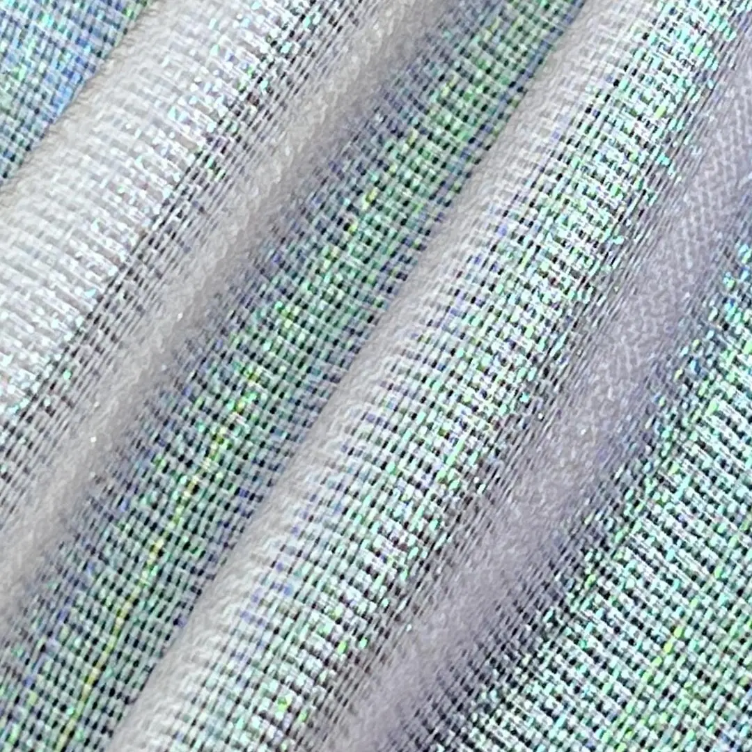 Unleash creativity and elegance with our 100% Polyester star-dust sparkle organdy fabric, a finely crafted material that blends a glossy sheen with delicate translucency to achieve both sophisticated structure and ethereal beauty. This crisp, lightweight fabric features a tight plain weave that provides excellent shape retention and a subtle glossy finish, making it ideal for evening gowns that demand grandeur and costumes that require dramatic visual impact.